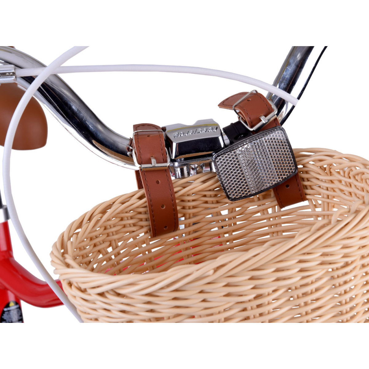 - Stabili vairas: platus ir ergonomiškai suprojektuotas, garantuoja pilną dviračio kontrolę. Vaire yra vieta stilingam ir talpiam krepšeliui pritvirtinti, kuris leis pasiimti būtinus daiktus į kelionę. Minkšti, patvarūs guminiai rankenų dangteliai užtikrina patikimą laikymą ir komfortą važiuojant. Vairo skambutis leis saugiai įspėti pėsčiuosius važiuojant.