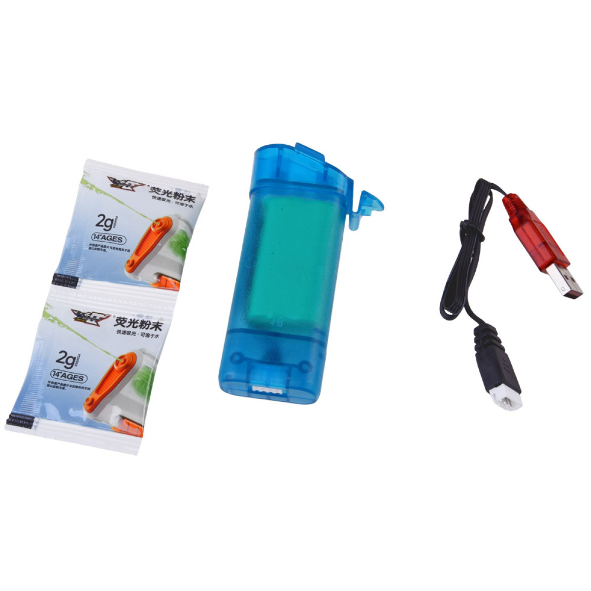 - 2 maišeliai miltelių (fosforas) fluorescenciniam vandeniui paruošti