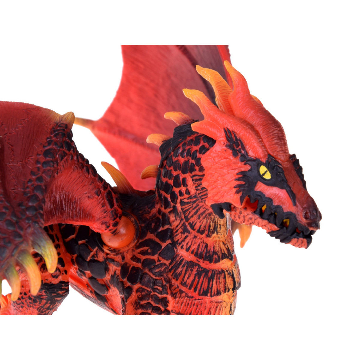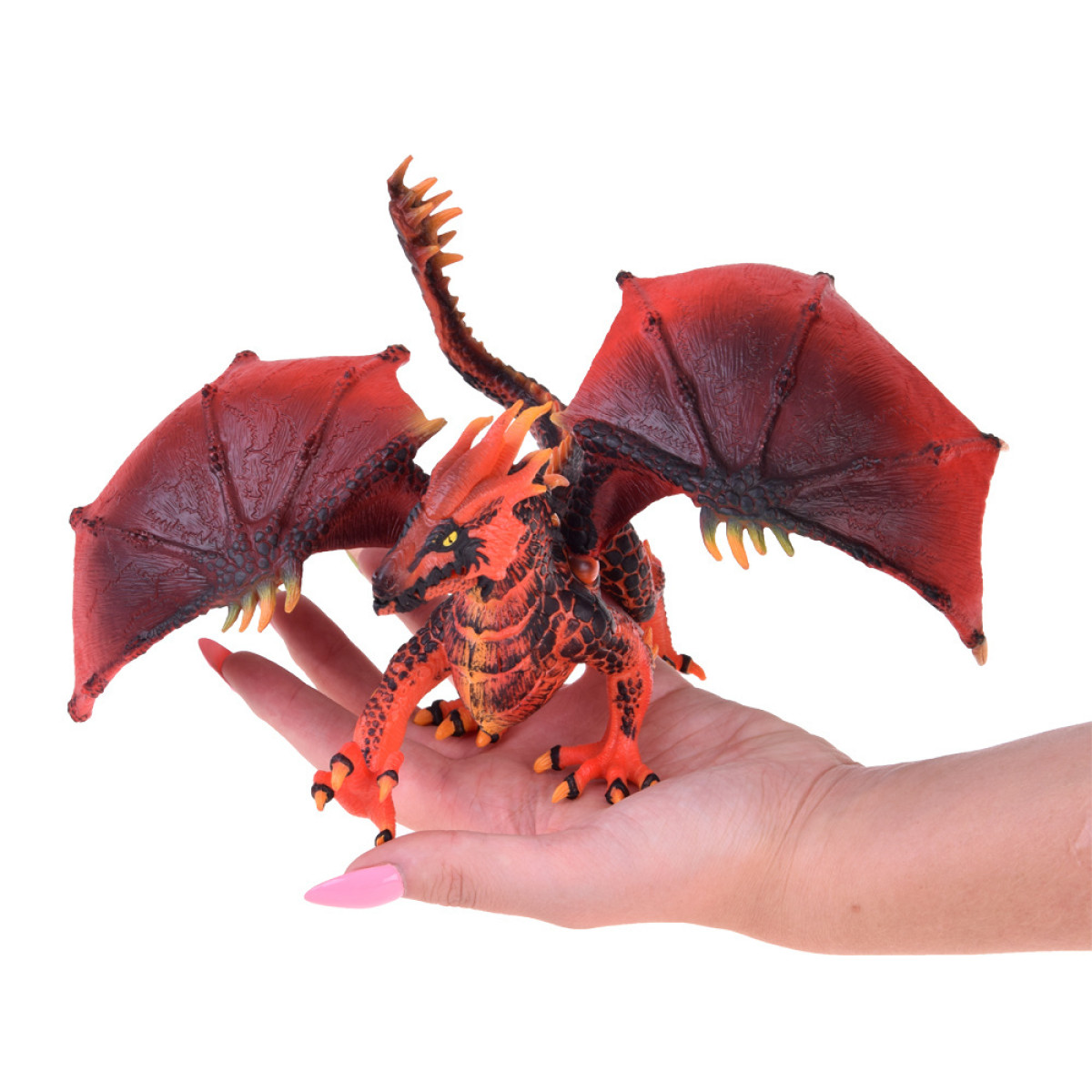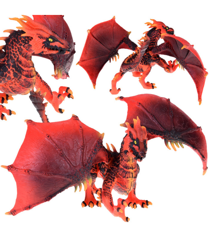 Ši įspūdinga figūrėlė vaizduoja galingą drakoną su ugnies spalvos žvynais, aštriais nagais ir judančiais sparnais bei judančia burna. Figūrėlė yra kruopščiai pagaminta iš aukščiausios kokybės medžiagų ir žavi realistiškomis detalėmis. Ji suteikia daug nuostabaus žaidimo, istorijų kūrimo ir pasakojimų.