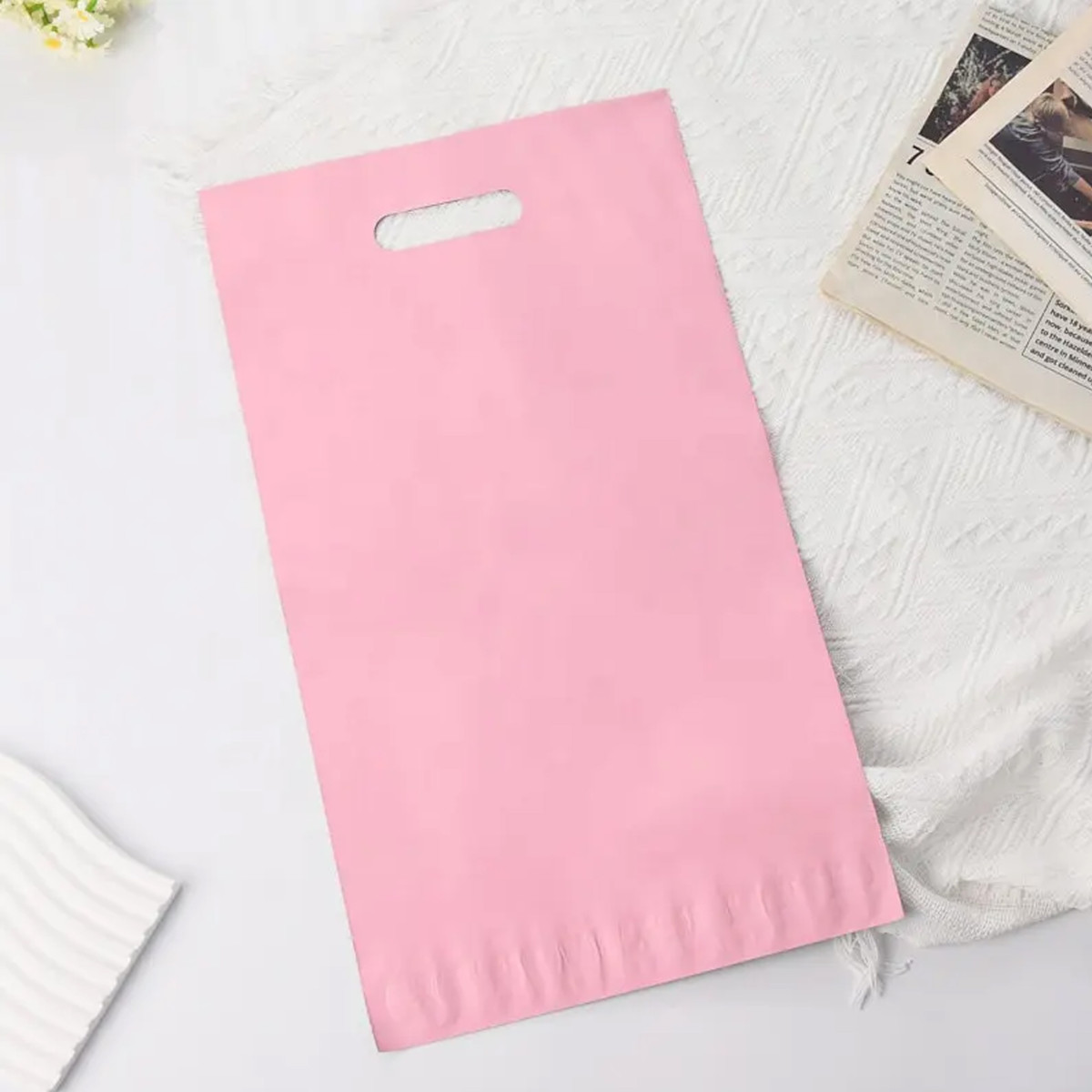 Rožiniai kurjeriniai vokai su rankenėle yra patogus ir saugus pasirinkimas internetinei prekybai bei kasdieniam siuntų pakavimui. Jie tinka tiek mažesniems, tiek didesniems daiktams siųsti.