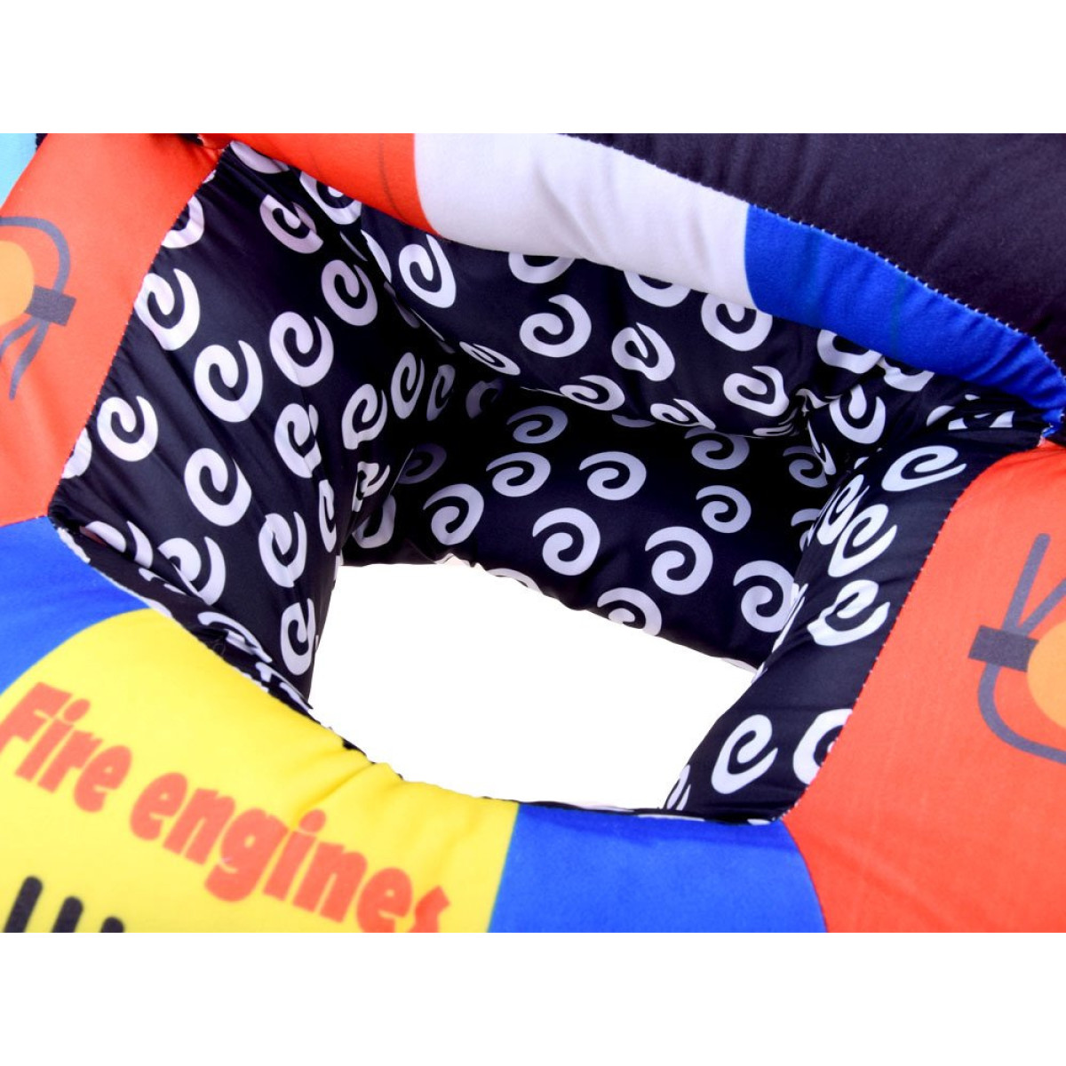 Fotelio dizainas imituoja gaisrinės automobilį, suteikdamas pramoginį aspektą. Fotelis turi nuimamų minkštų ratų, kurie prideda transporto priemonei charakterio. Minkštas fotelis su plačiomis šoninėmis atramomis ir stabiliu atlošu vaikui yra malonus liesti. Esant nešvarumams, jį lengva nuvalyti drėgna šluoste. Stabilus fotelis gali būti pirmoji atrama, kai mažylis pradeda sėdėti.