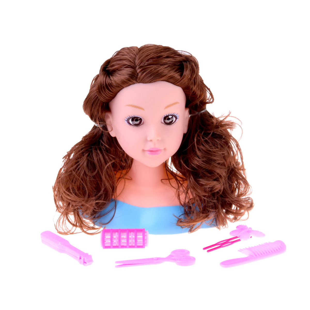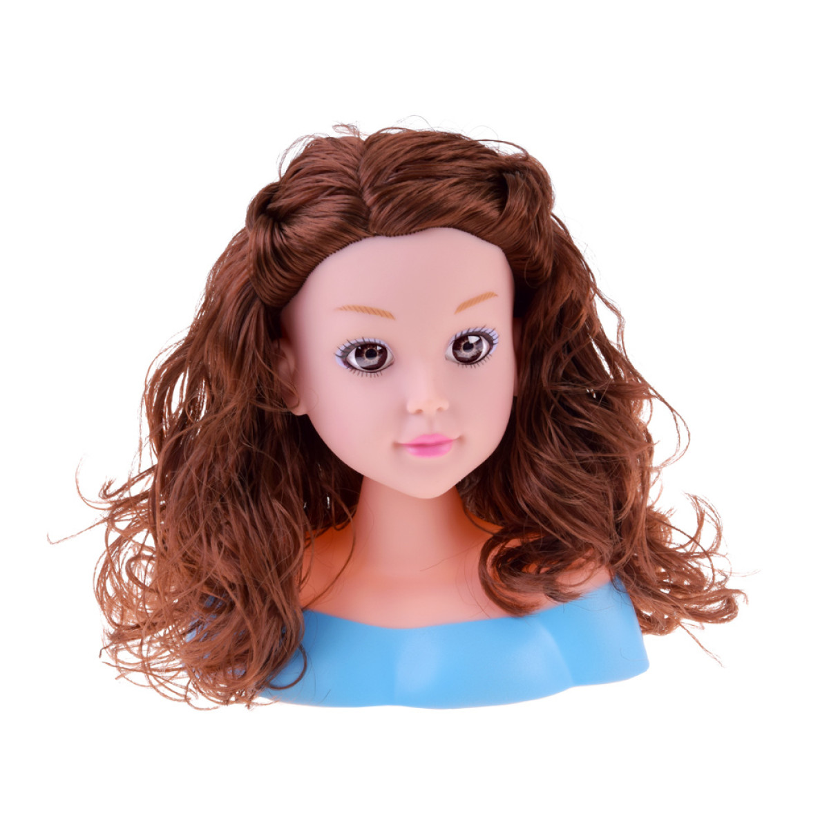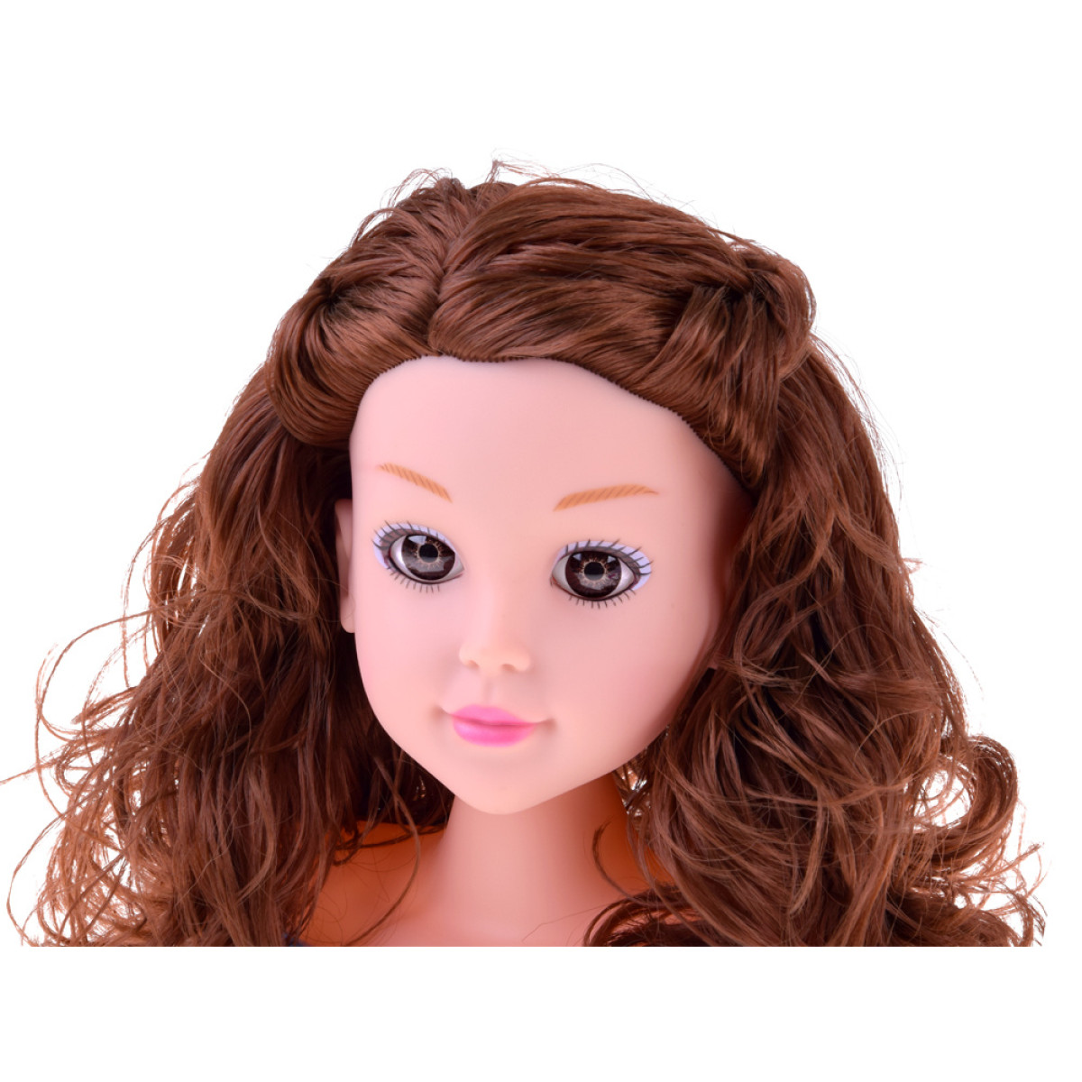- Lėlės galva – graži lėlė šatenė su ilgais, minkštais plaukais, didelėmis rudomis akimis ir subtiliu makiažu. Plaukai lengvai šukuojami ir formuojami, todėl vaikas gali kurti įvairias šukuosenas: kuodus, kasytes, garbanas ar tiesias šukuosenas. Visa tai yra ant tvirtos pagrindo, kas palengvina žaidimą ir apsaugo nuo apvirtimo. Matmenys: apie 20 cm x 18 cm.