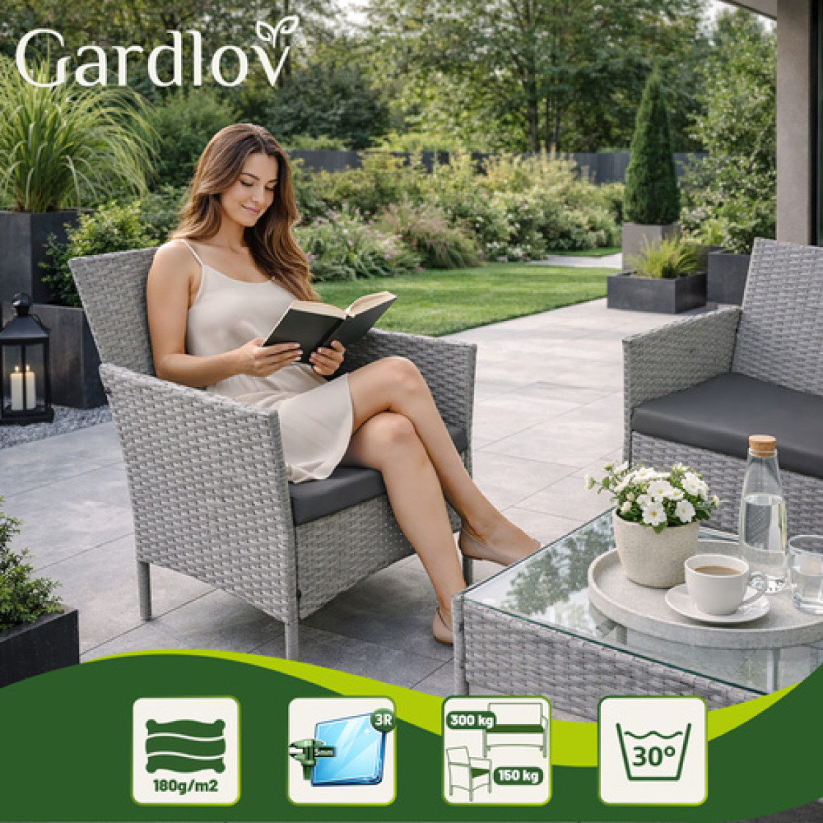 Ieškote patogaus ir elegantiško sodo baldų komplekto savo sodui, terasai ar balkonui? Sodo baldų komplektas Gardlov pilkos spalvos yra ideali sprendimas, kuris užtikrina komfortišką poilsį ir stilingai papuoš jūsų lauko erdvę. Dabar galite sukurti svajonių poilsio kampelį visai šeimai.