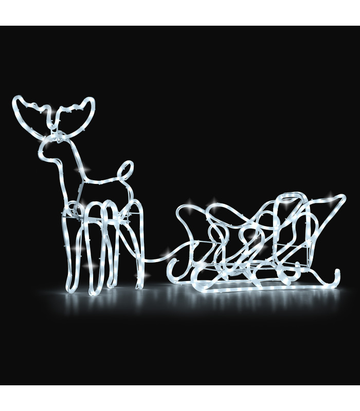 LED šviečiantis Kalėdinis elnias su rogutėmis bus puiki dekoracija kiekvieno namuose! Šis elnias sudarytas ir LED lempučių, kurios bus matomos net ir iš labai toli! Be to, jis atsparus temperatūros pokyčiams, todėl tinkamas naudoti ir lauke ir viduje. Papuoškite savo namus jau šiandien ir mėgaukitės malonia šventine atmosfera!