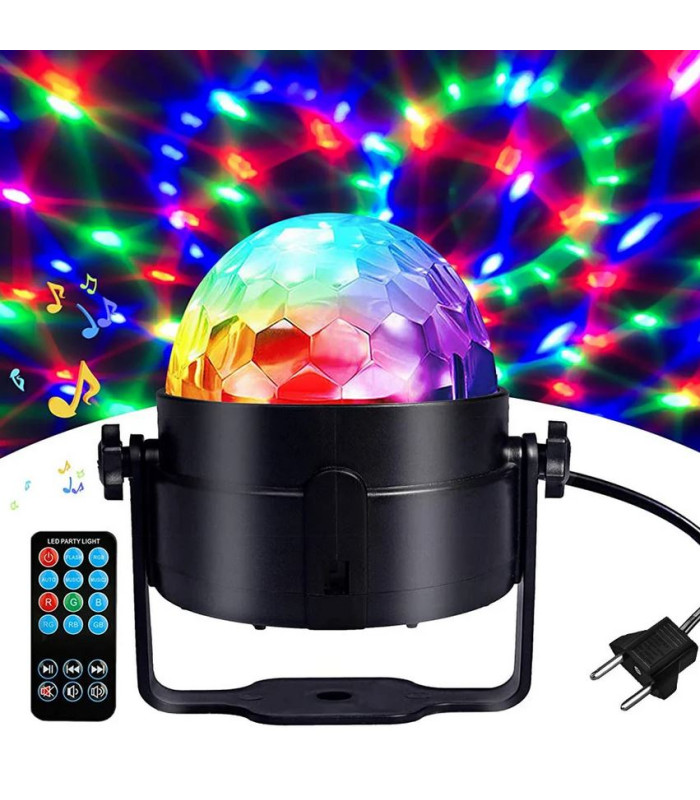 - RGB LED 3x1W šviesos - ši vakarėlių šviesa įsijungia iškart, kai ji yra prijungta, ir ji automatiškai pulsuos šviesos pokyčius pagal muzikos ritmą.