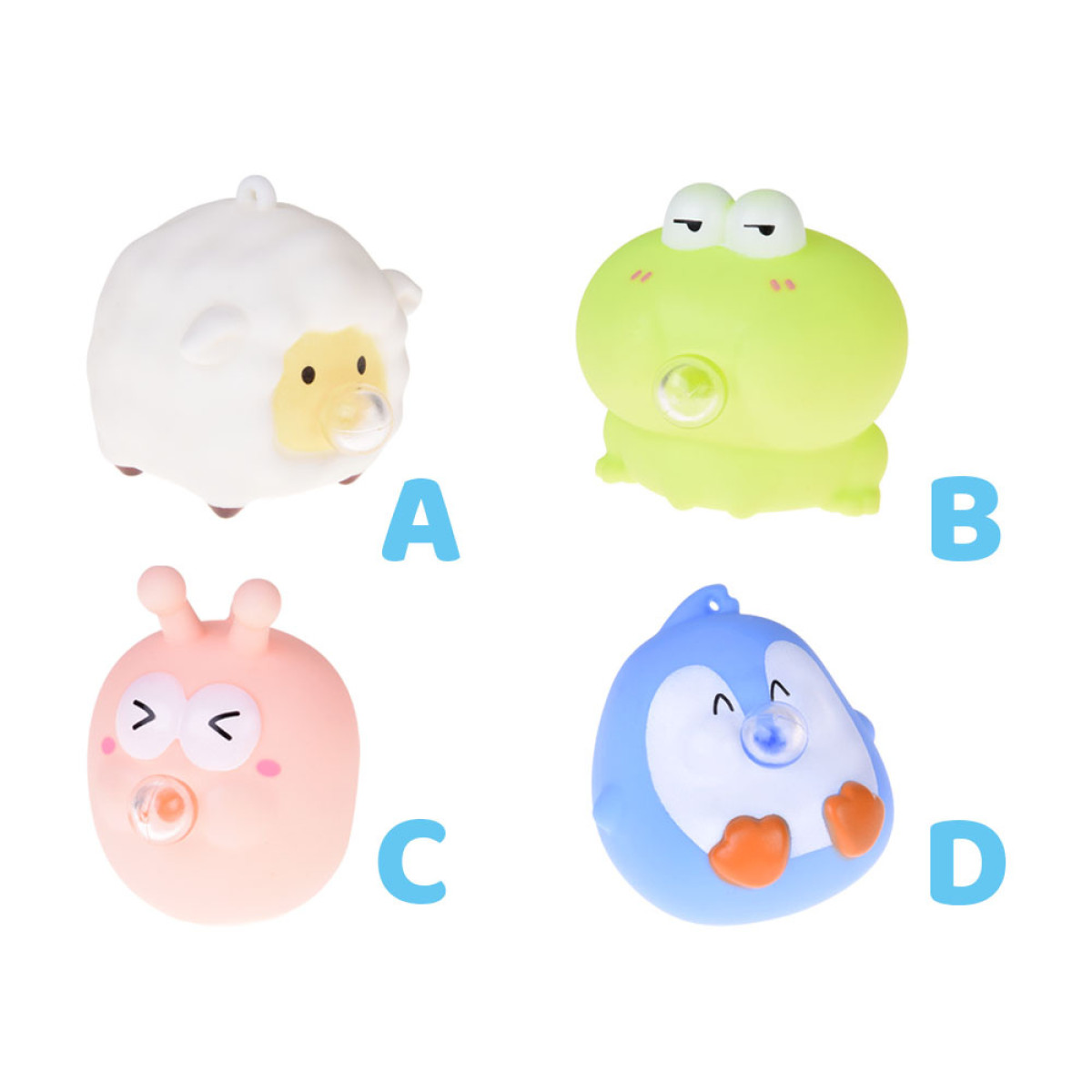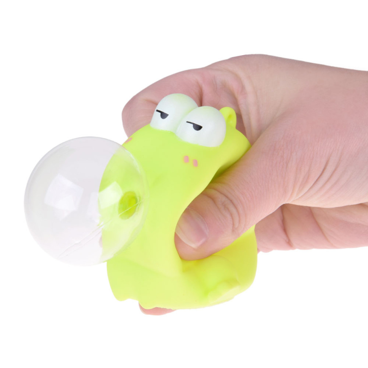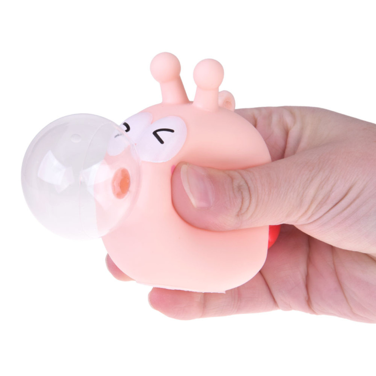 - Įdomus ir linksmas dizainas – gniužutis gyvūno formos sukelia vaikų susidomėjimą. Suspaudus šonus, gyvūnėlis išpučia didelį balioną, kas atrodo itin linksmai. Jis turi draugišką veidą ir yra pagamintas iš malonios, minkštos gumos.
