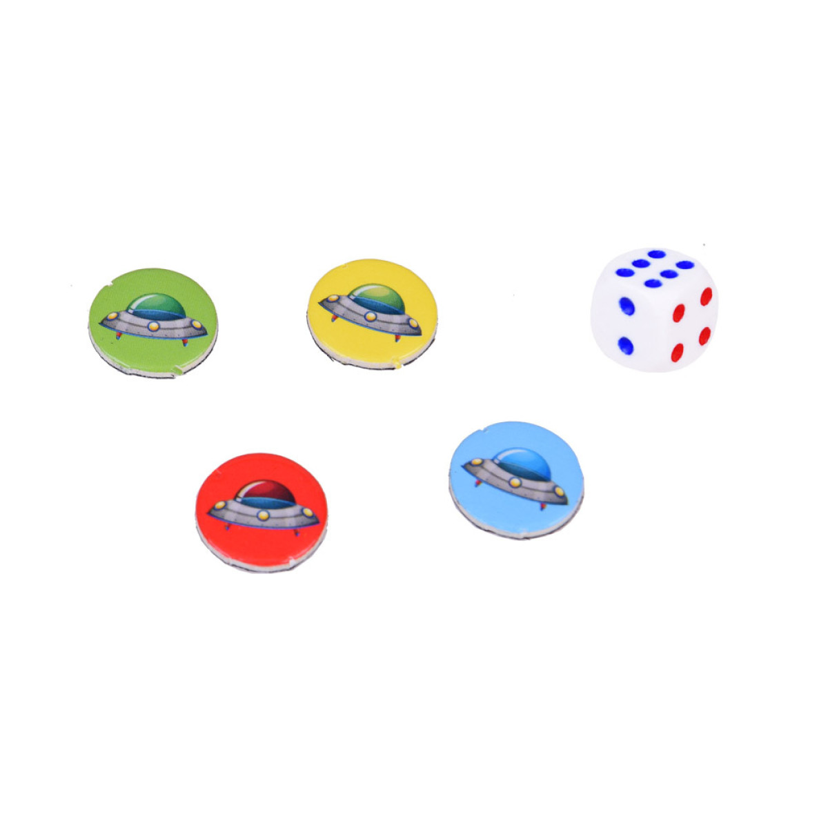 - Magnetiniai žetonai: 4 skirtingų spalvų žetonai.
