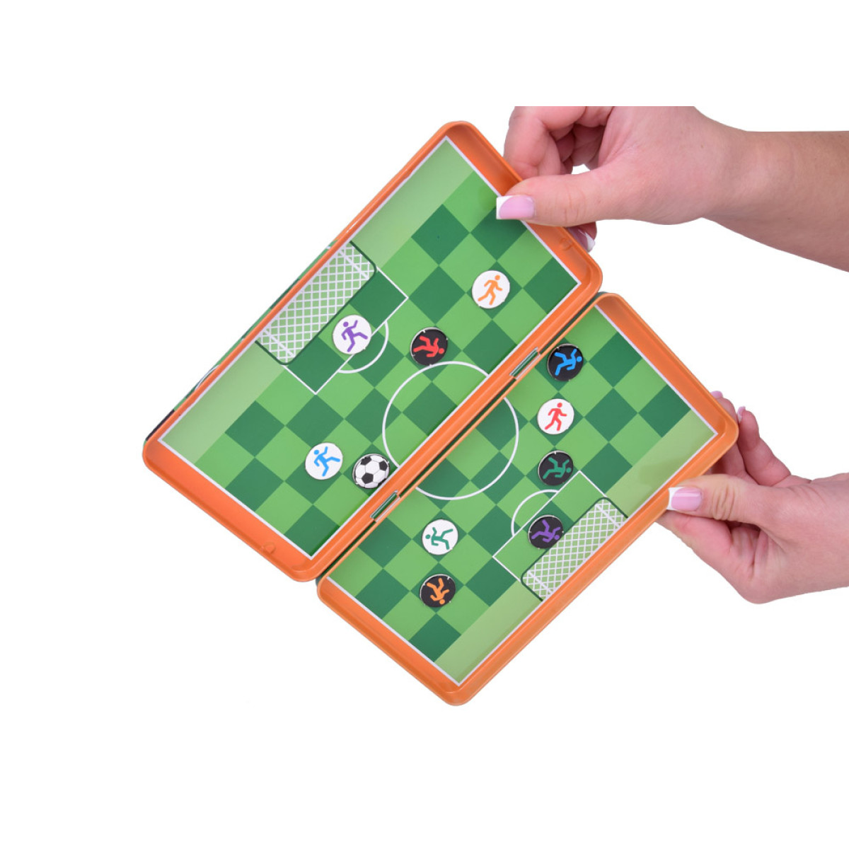 Magnetinė „Futbolo“ žaidimas yra puikus užsiėmimas kelionėms. Kompaktiška metalinė lenta ir magnetinės figūrėlės garantuoja puikią pramogą. Mušk įvarčius, aplenk varžovus ir tapk aikštės čempionu! Šiame magnetiniame futbolo žaidime visi gali pasijusti tikrais futbolininkais. Perstumk savo žaidėjus per aikštę, aplenk varžovus ir mušk įvarčius! Taisyklės paprastos, o pramoga garantuota. Idealiai tinka futbolo gerbėjams bet kokio amžiaus.