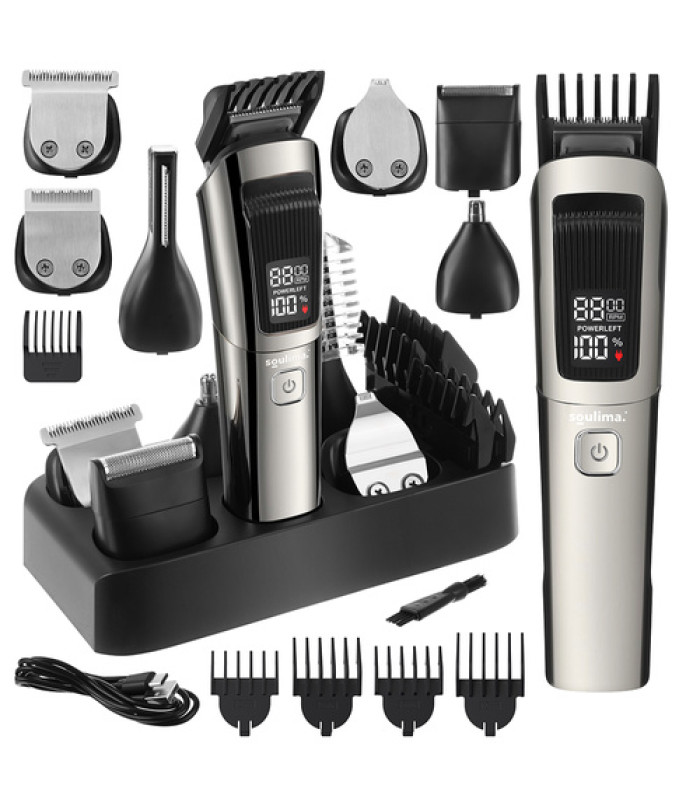 Skustuvo - trimerio rinkinys Soulima 27313 yra idealus sprendimas visapusiškai plaukų, barzdos ir kūno priežiūrai. Šis 8 viename įrenginys suteikia galimybę greitai kirpti, tiksliai kontūruoti ir švelniai skusti be sudirgimų. Jis pasižymi moderniu ekranu, USB-C įkrovimu ir IPX6 atsparumu vandeniui, todėl yra puikus pasirinkimas kasdieniam naudojimui namuose ar kelionėje.