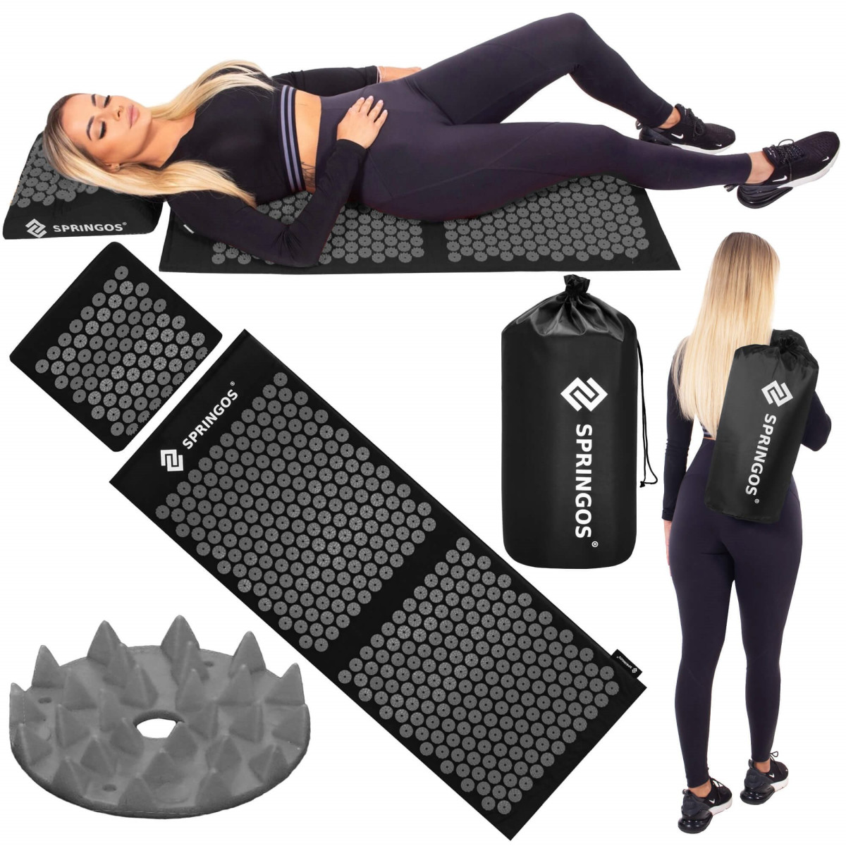 Akupresūros kilimėlis su cilindro formos pagalve, kūno stimuliatorius, atsipalaidavimo masažuoklis, Springos FA0153 juodas