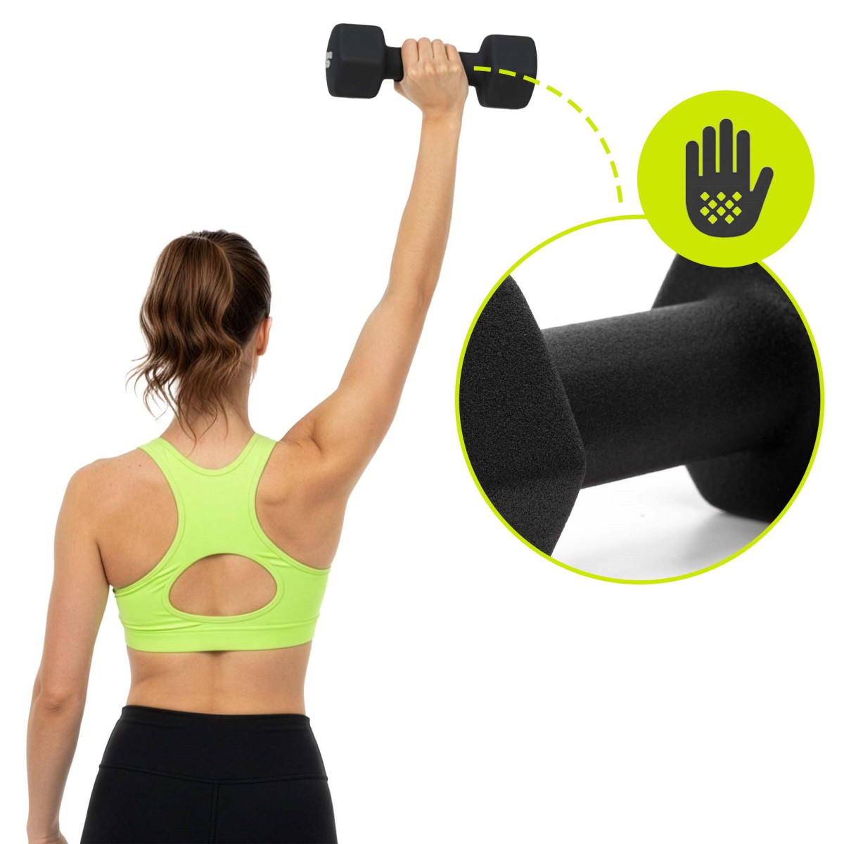 Atstumas nuo rankenos iki žemės: 1,5 cm - 3 kg hantelis: