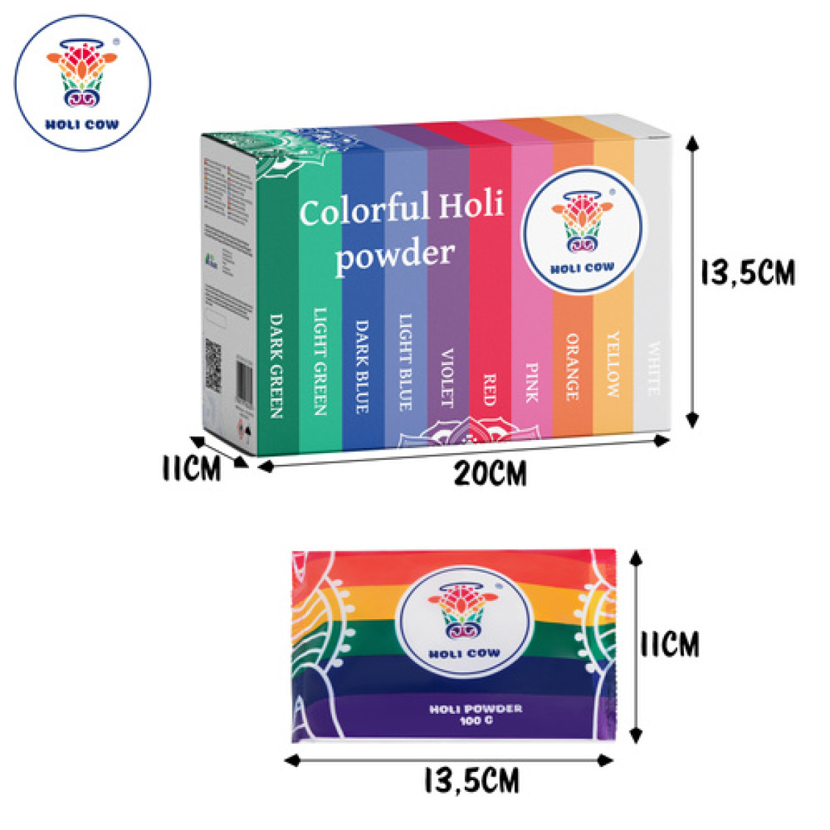 holi miltelių rinkinys 10 x 100 g Holi Cow spalvingoms šventėms