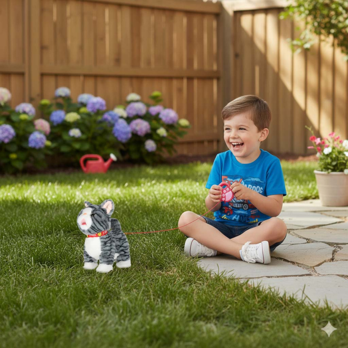 Šis interaktyvus katinas yra puiki priemonė parodyti vaikui, kaip prižiūrėti augintinį. Jis skatina socialinius įgūdžius ir empatiją. Žaislas veikia su AA baterijomis ir groja linksmas daineles anglų kalba. Vaikščiodamas su katinu, vaikas lavina motorikos įgūdžius ir pusiausvyrą.