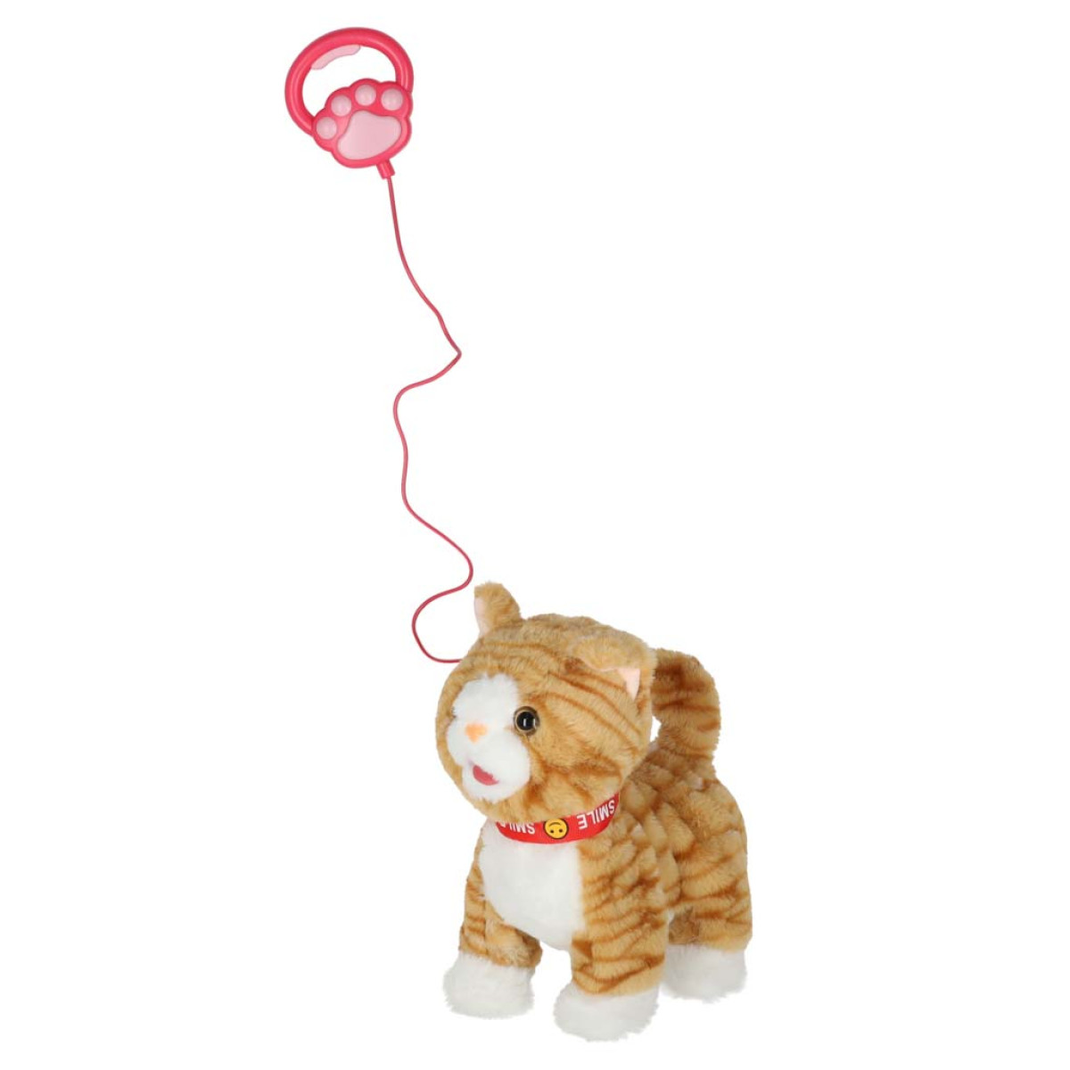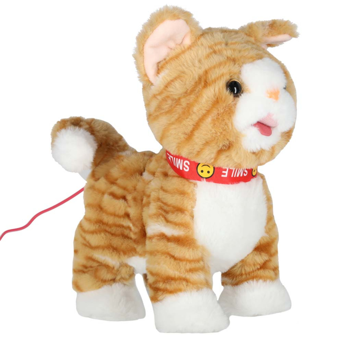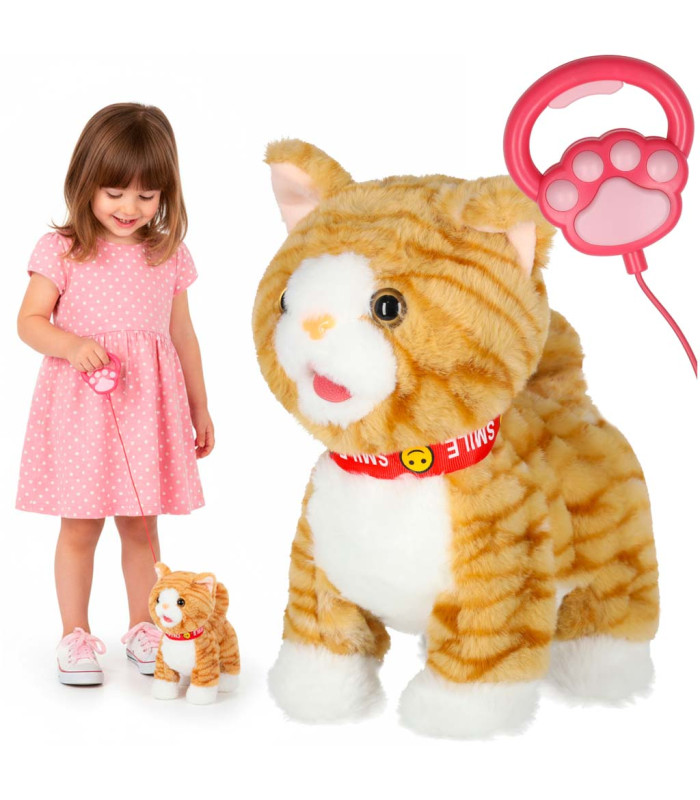 Interaktyvus katinas su pavadėliu taps puikiu pliušiniu draugu jūsų vaikui. Jis veikia su AA baterijomis – įdėjus jas, katinas yra pasiruošęs vaikščioti! Pavadėlyje esantis jungiklis leis katinui judėti į priekį pagal linksmas dainas. Katinas taip pat reaguoja į paglostymą – jis miauksi ir trinasi.