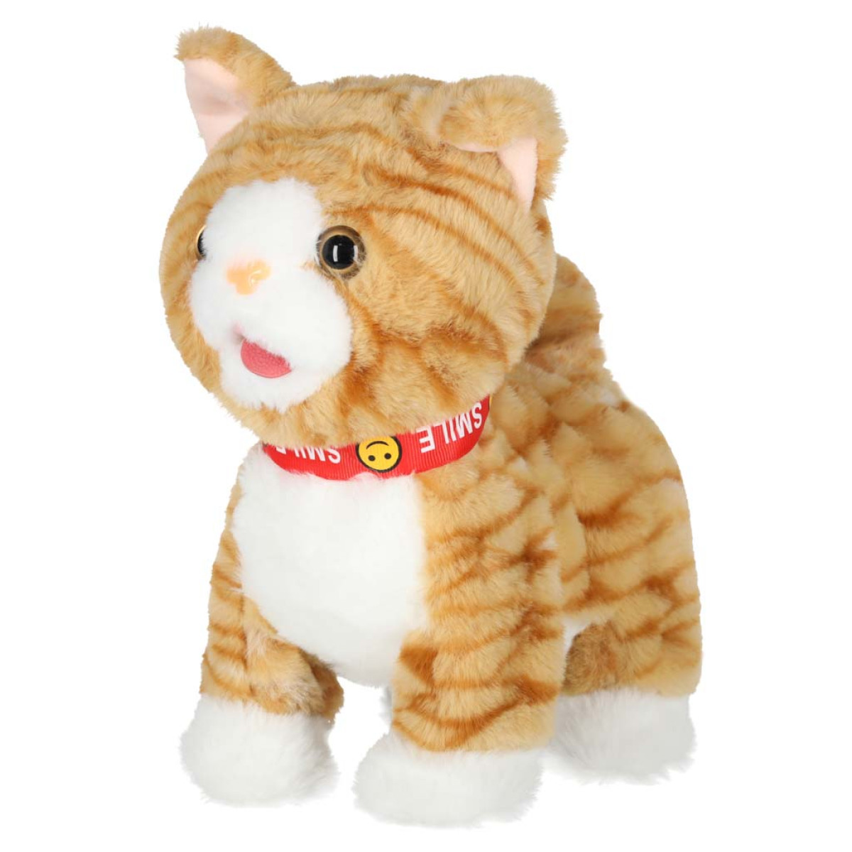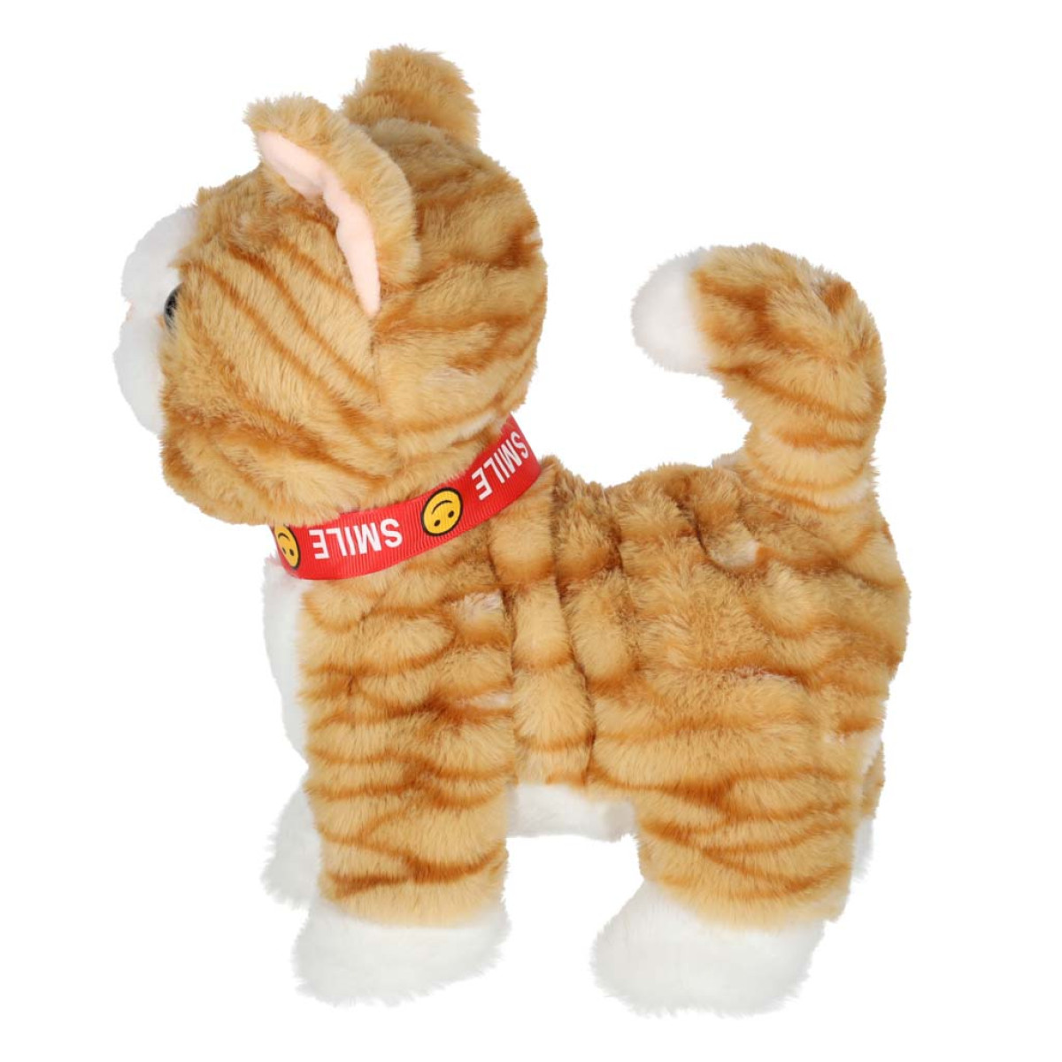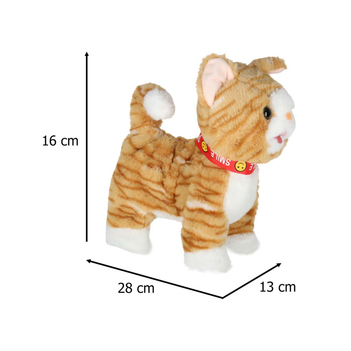 Interaktyvus katinas su pavadėliu taps puikiu pliušiniu draugu jūsų vaikui. Jis veikia su AA baterijomis – įdėjus jas, katinas yra pasiruošęs vaikščioti! Pavadėlyje esantis jungiklis leis katinui judėti į priekį pagal linksmas dainas. Katinas taip pat reaguoja į paglostymą – jis miauksi ir trinasi.