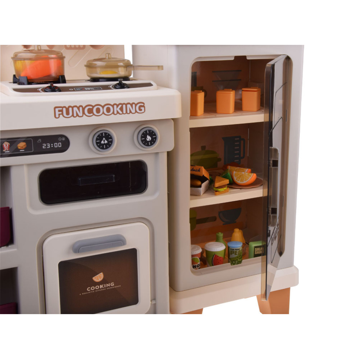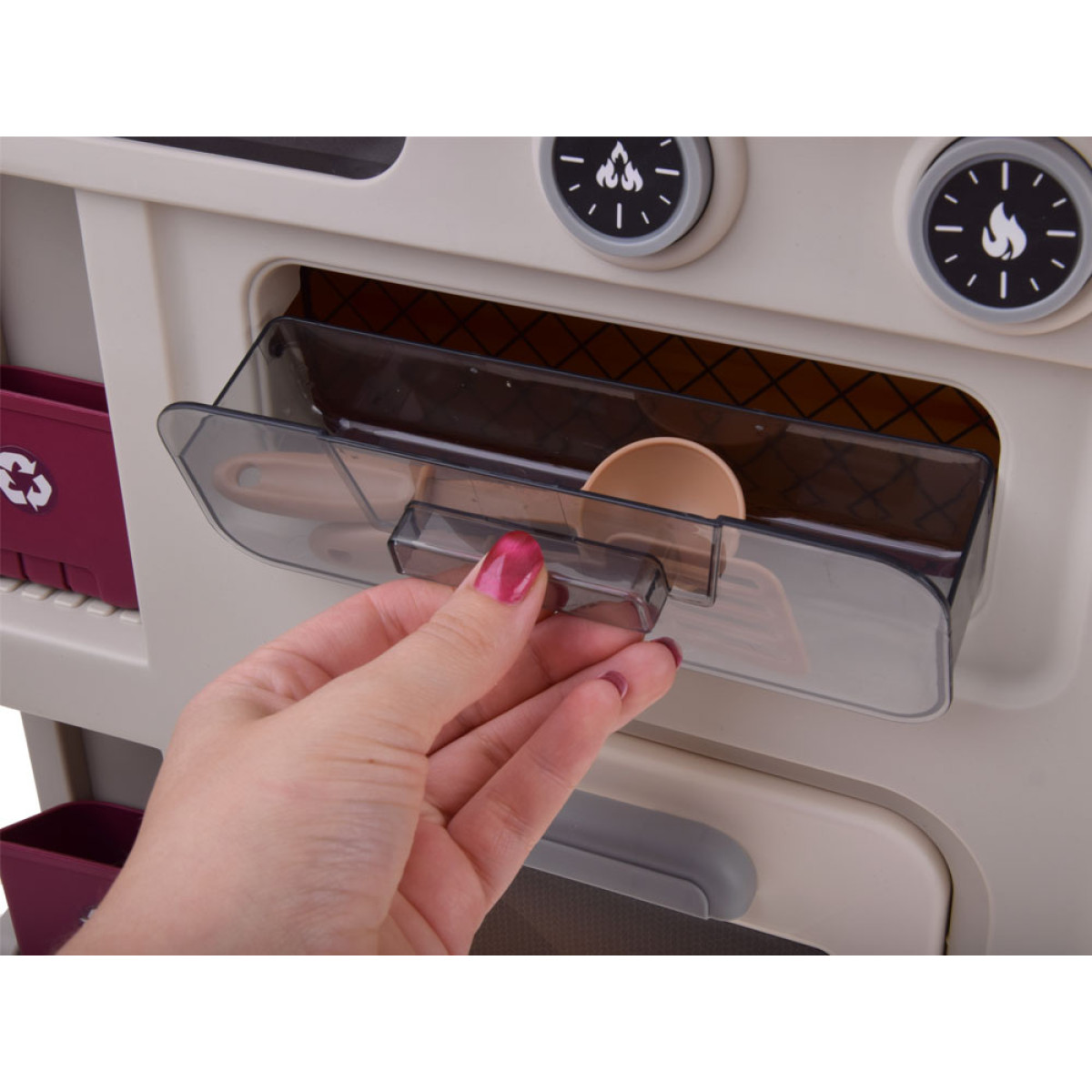 Ši didelė, plastikinė virtuvė šviesiomis, maloniomis spalvomis yra puikus priedas kiekvieno vaiko kambariui ar žaidimų kampeliui. Realistinis apšvietimas, garso efektai ir funkcijos leidžia vaikams jaustis lyg tikroje virtuvėje, ugdant kūrybiškumą ir kulinarinius įgūdžius.