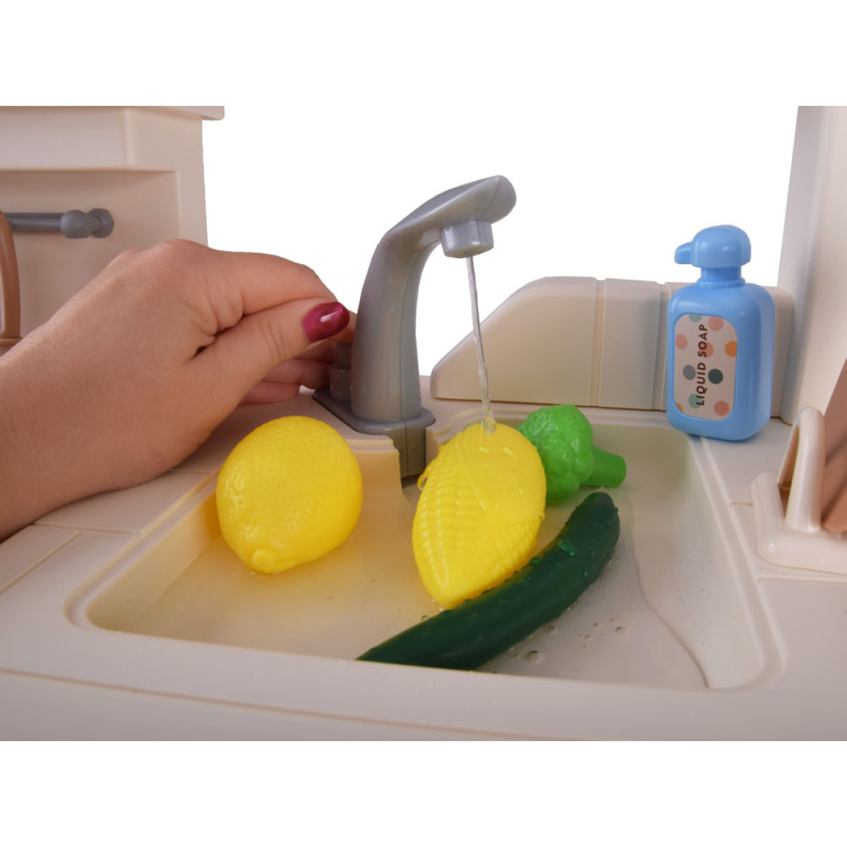 - Pompuojamas kranas su vandeniu – galima pilti tikrą vandenį, kaip tikrame kriaukle.