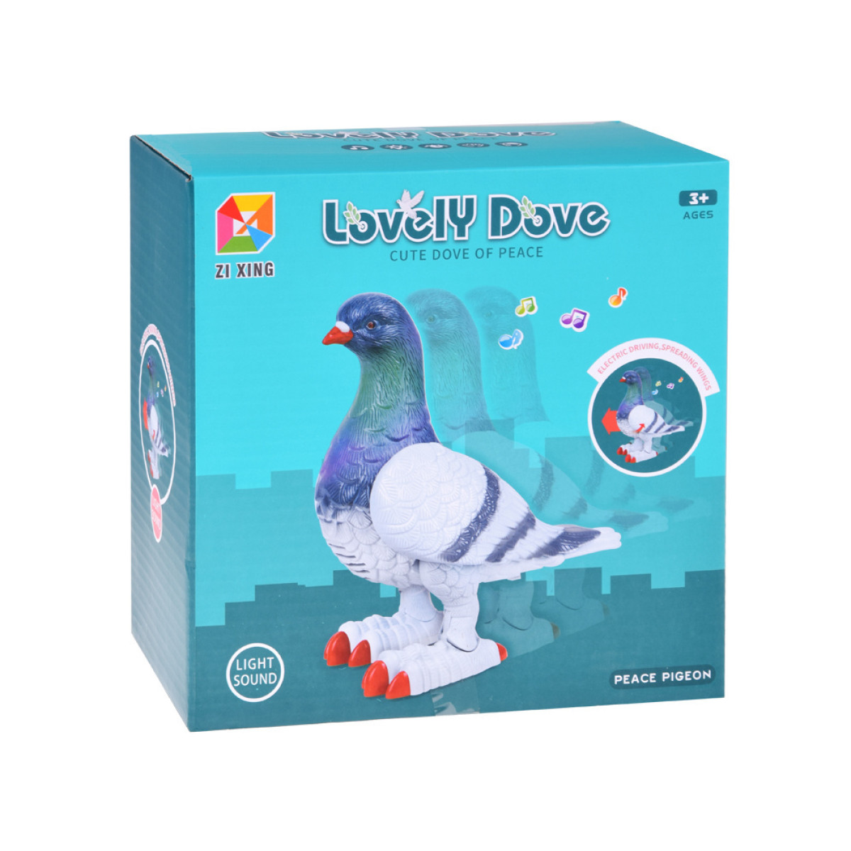 Interaktyvus balandis, maitinamas baterijomis, yra išskirtinė pramoga! Balandis sukurtas itin realistiškai, jo plunksnų spalva, forma ir dydis atitinka tikrą balandį. Žaislas juda lėtai pirmyn, plasnodamas sparnais ir mirksėdamas akimis, skambant linksmam Alpių melodijai. Žaislas pagamintas iš plastiko, atkreipiant dėmesį į detales.