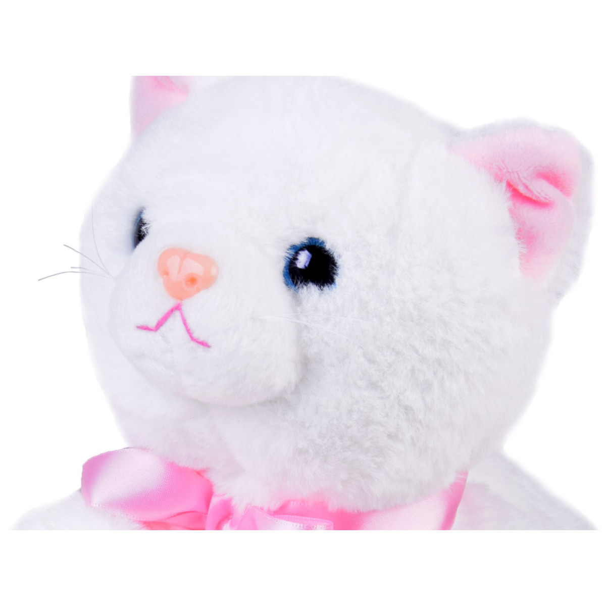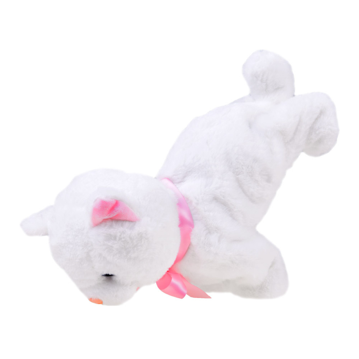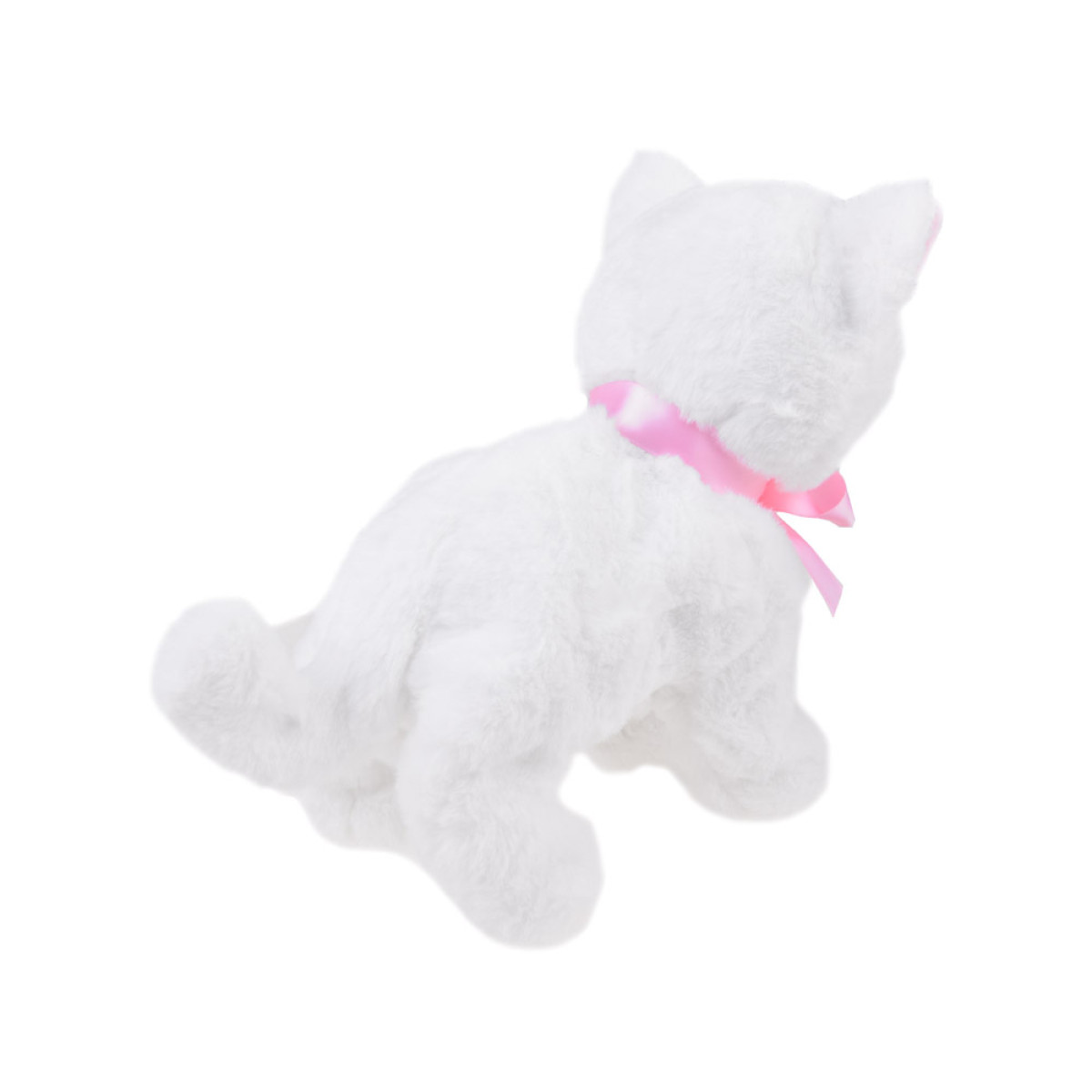 Mažas mielas interaktyvus katinukas su rožiniu kaspinu gali tapti kiekvieno vaiko draugu. Mažas baltas išdykėlis, kai paliečiamas ranka ar suplojama rankomis, leidžia kačių garsus bei atlieka akrobatinius judesius. Juk kiekvienas mažylis svajoja apie keturkojį draugą, su kuriuo galėtų žaisti. Tačiau sunku patenkinti visus mūsų vaikų norus, ypač jei jie svajoja apie tikrą keturkojį, o mes neturime galimybės tokio gyvūno laikyti. Todėl, kad bent iš dalies, o gal net minimaliai išpildytume jų norus, siūlome šį žavų pliušinį katinuką psotuką. Katinukas yra padengtas pliušiniu minkštu kailiuku, turi žavų rožinį plastikinį nosytę ir linksmas plastikines mėlynas akutes.