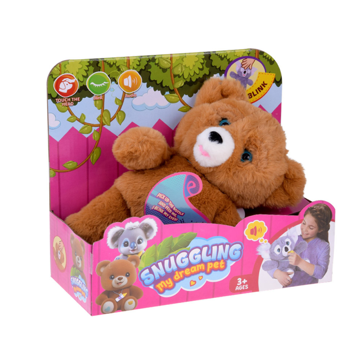 Interaktyvus meškiukas su buteliuku yra puiki dovana vaikams nuo 3 metų – sujungia edukacinį žaislą su emociniu palaikymu ir daugybe valandų džiaugsmingo žaidimo. Žaislas supakuotas į spalvingą, atvirą dėžę, puikiai tinkamą kaip dovana.