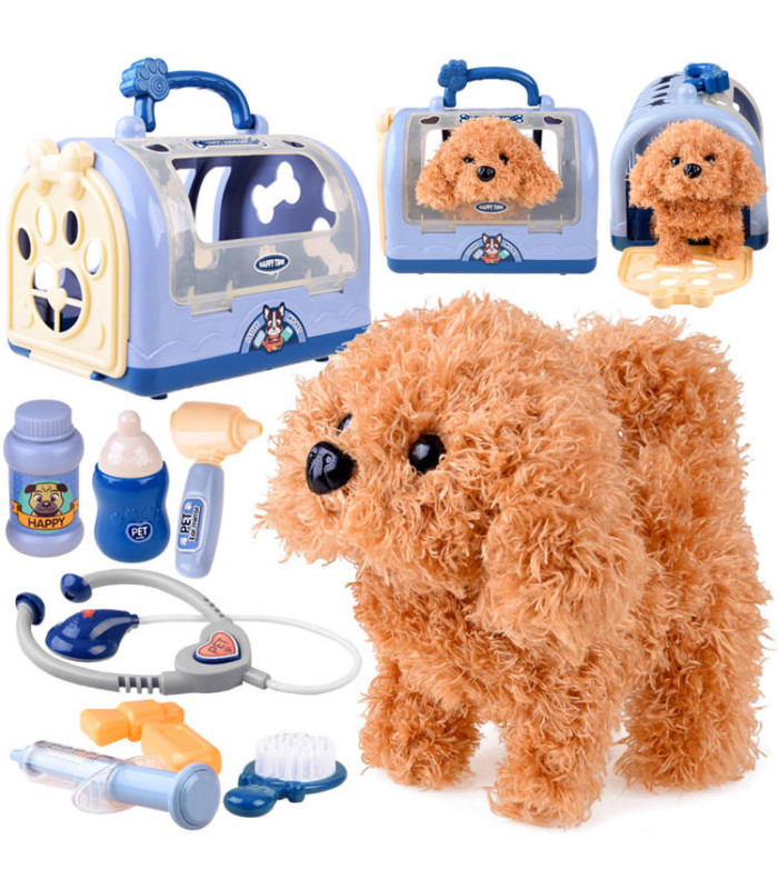 Interaktyvus Šuniukas: Mažojo Veterinaro Rinkinys su Aksesuarais ir Transporteriu