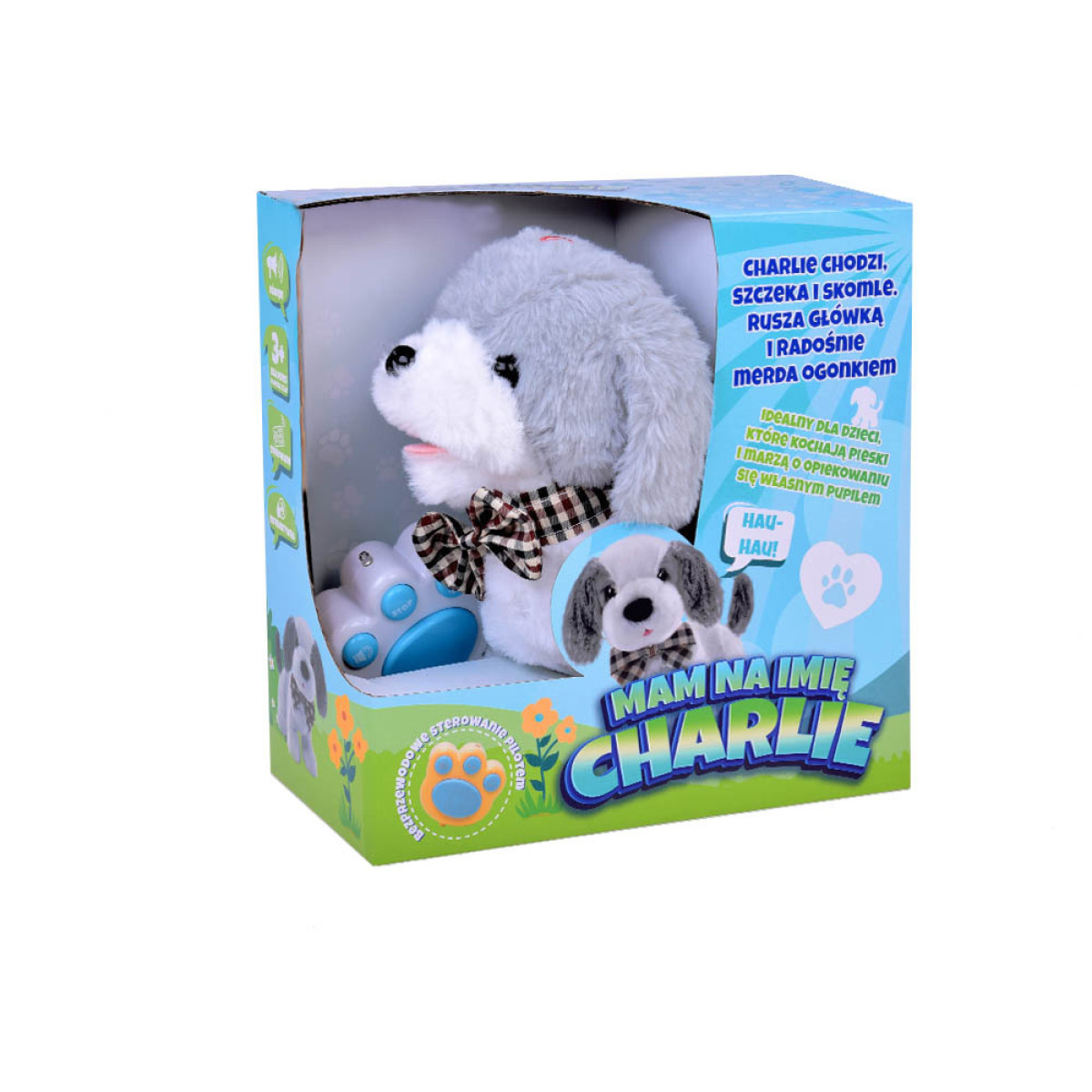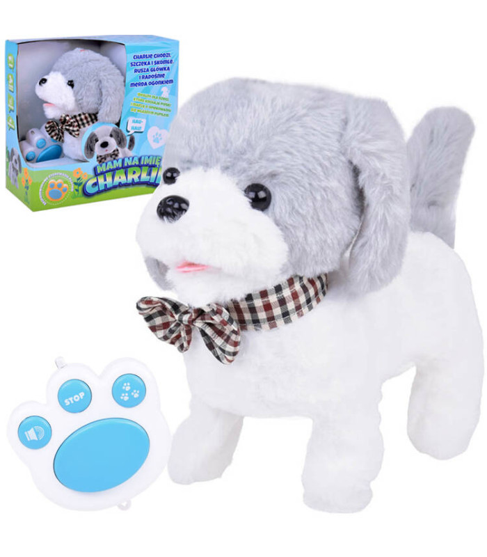 Žavingas interaktyvus šuniukas Charlie vaikšto, loja, žaidžia ir džiugina! Susipažinkite su elegantišku šuniuku, baltai pilku spalvų, su elegantišku kaklaraiščiu po kaklu. Šuniukas Charlie – žavingas, interaktyvus draugas, kuris bus puikus kompanionas kiekvienam vaikui, svajojančiam apie savo augintinį. Šuniukas, apveltas pliušine medžiaga, yra puikus glostyti.