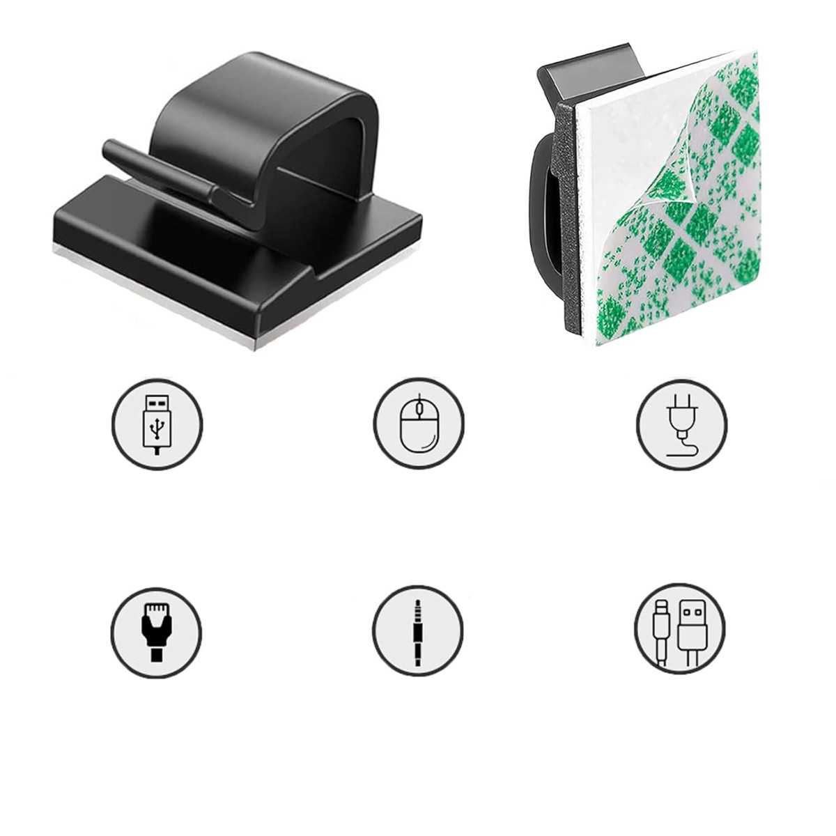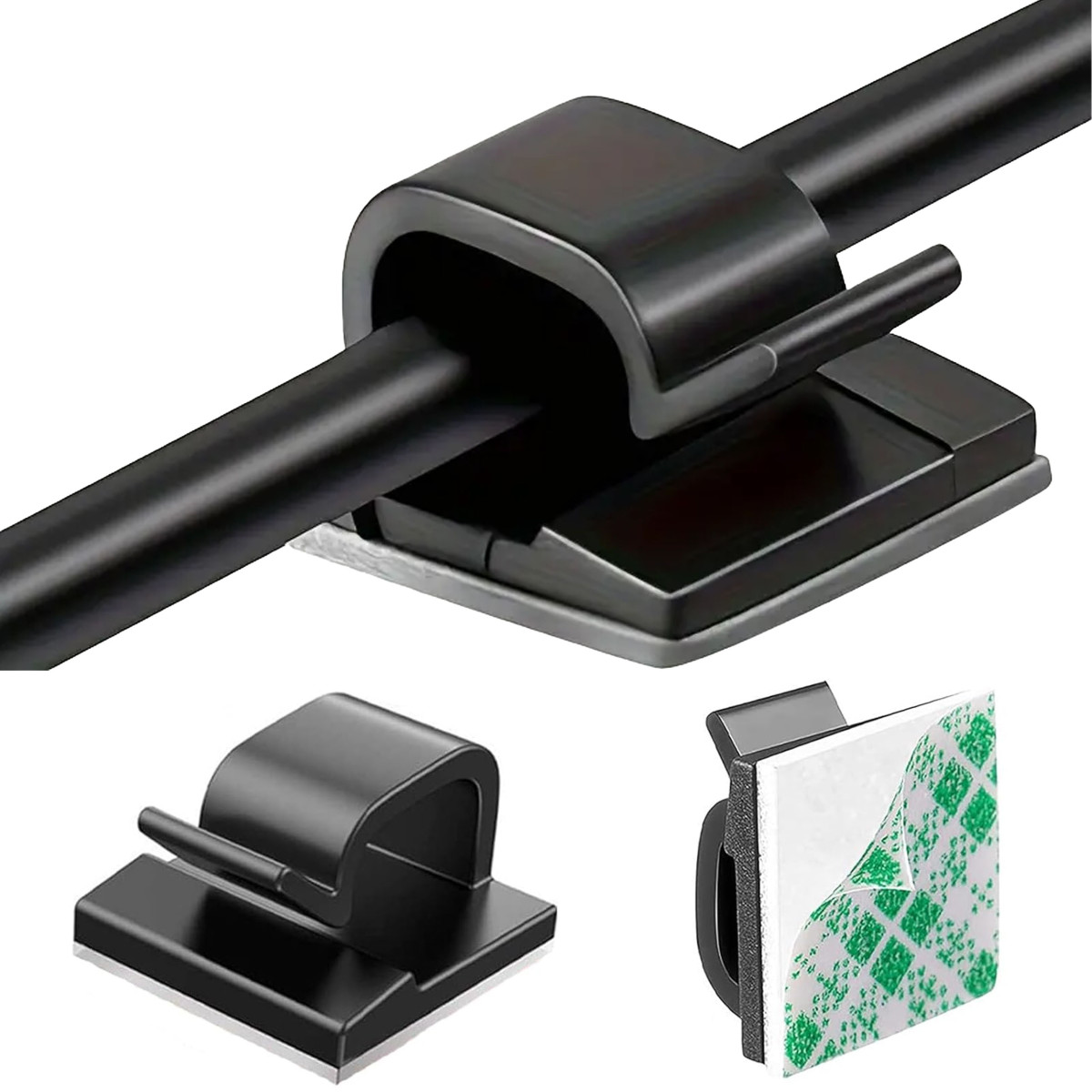 ⭐ Kabelių Organizatoriaus Klipsas Su Lipnia Juosta, Juodas, 10 vnt. ⭐