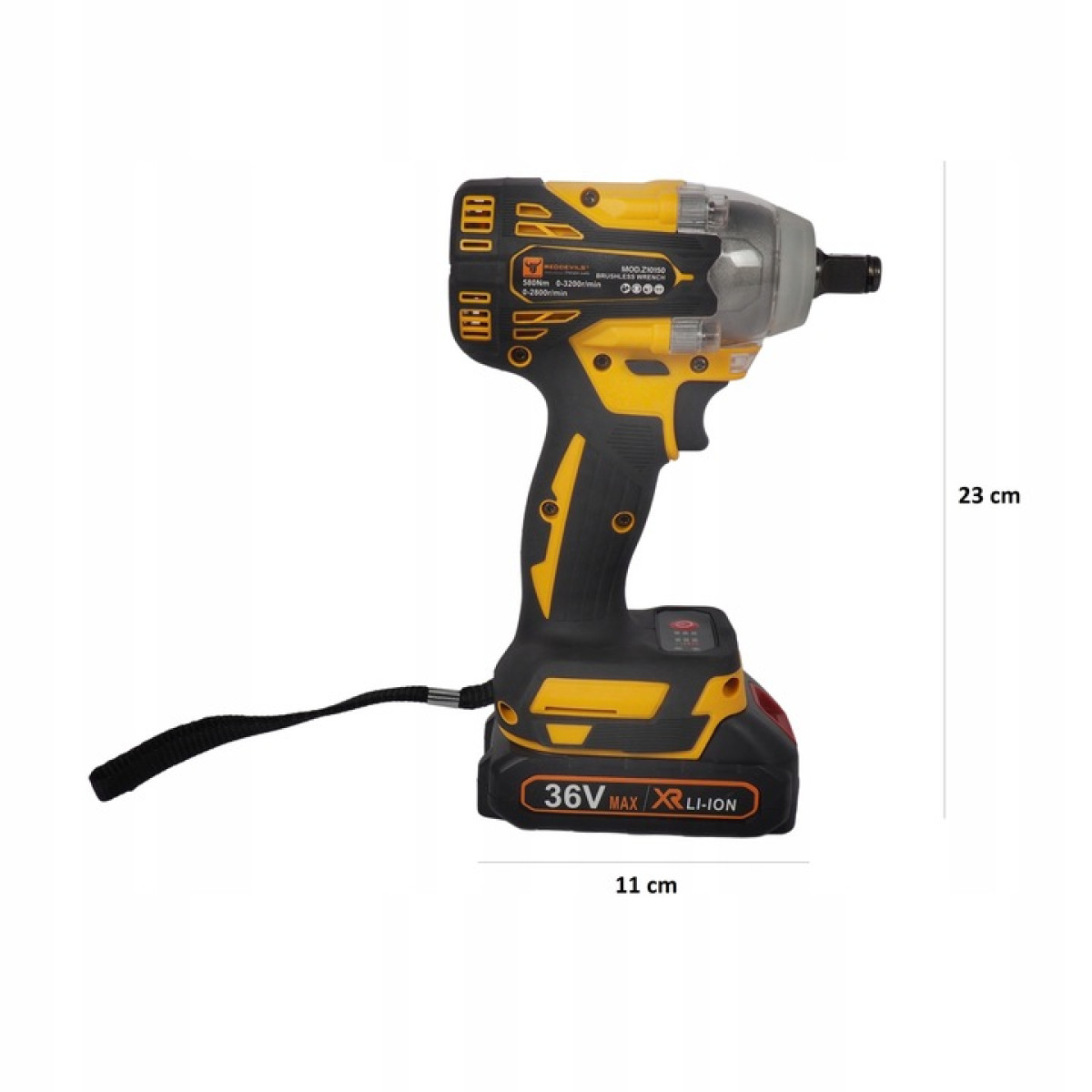 Smūginis veržliaraktis taip pat aprūpintas galingu šviesos diodu, kuris leis dirbti sunkiomis sąlygomis. Patogi rankena, apipinta guma, leidžia tvirtai suimti. Be to, jis turi skydelį, kuriame galime keisti darbo greitį ir jo būdą, ant jo yra įjungimo/išjungimo jungiklis. Įrenginys persijungia į miego režimą po 10 sekundžių neveikimo.