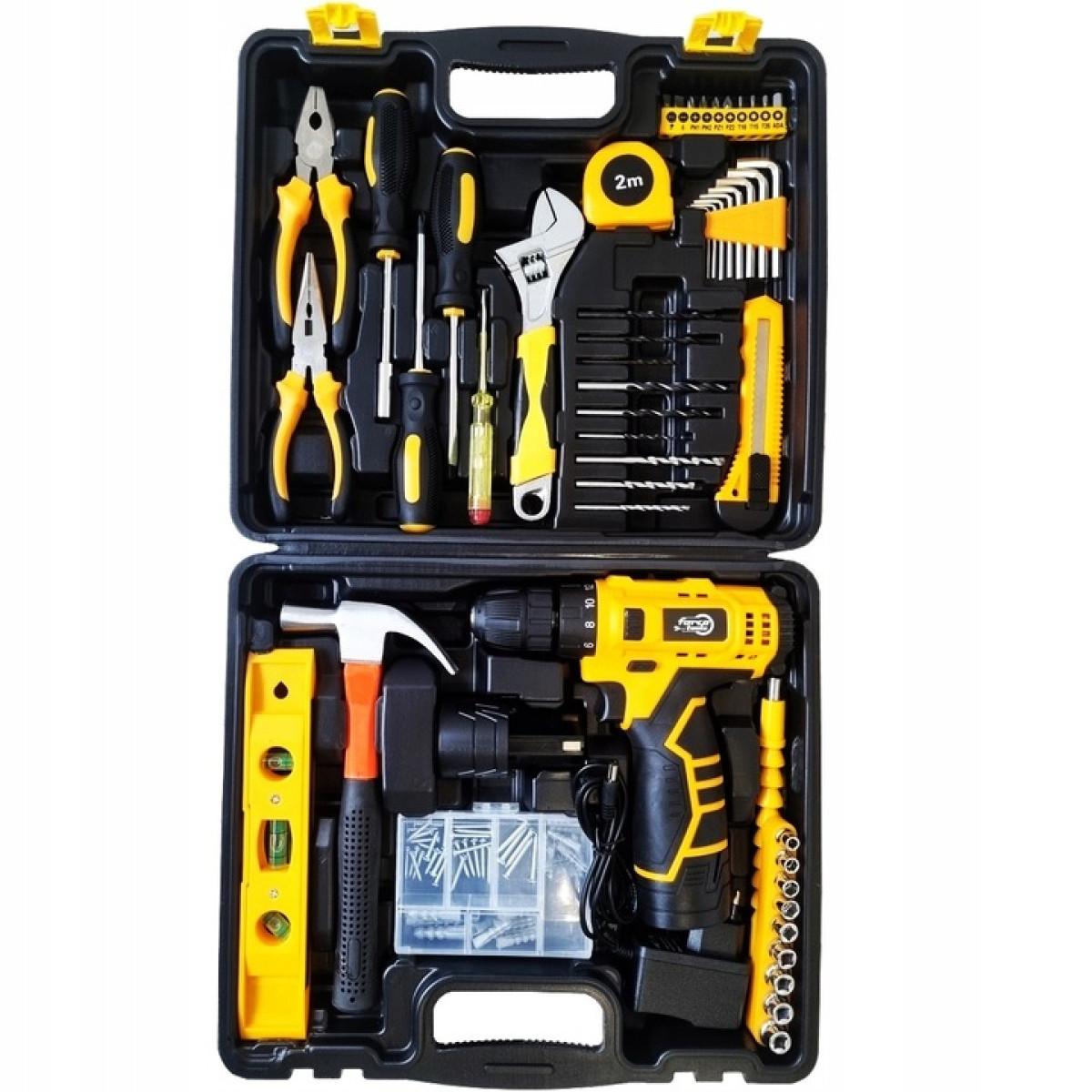 Komplekte yra dvejos baterijos, apšvietimas, sukimo momento reguliavimas, transportavimo dėklas.