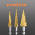 - NUMERACIJA – grąžtai laiptuoti, kiekvienas turi numeraciją. Jis puikiai skaitomas, kurio dėka nesunkiai išgręžiame norimo pločio skylę. Į komplektą įeina trys grąžtai – skirti įvairaus dydžio skylėms daryti.