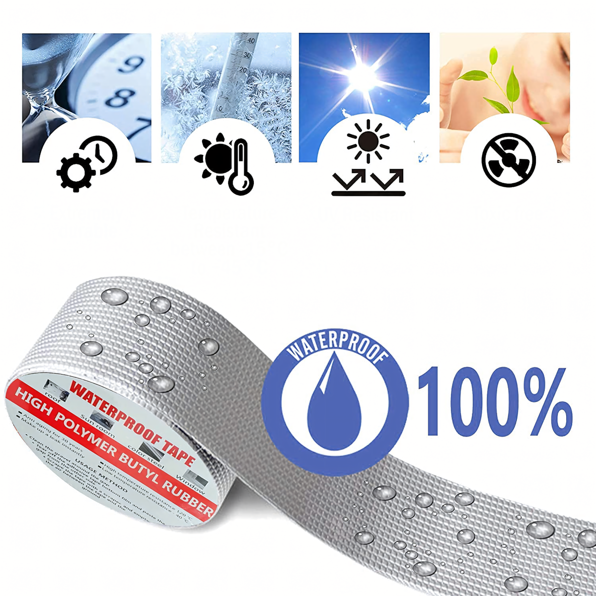 – patikimas sandarinimas metams!Vandeniui atspari, atspari UV spinduliams, sniegui ir aukštoms temperatūroms. Ideali stogams, latakams, automobiliams, langams ir namų remontui. Lanksti, lipni ir patvari – vienas sprendimas daugeliui problemų!