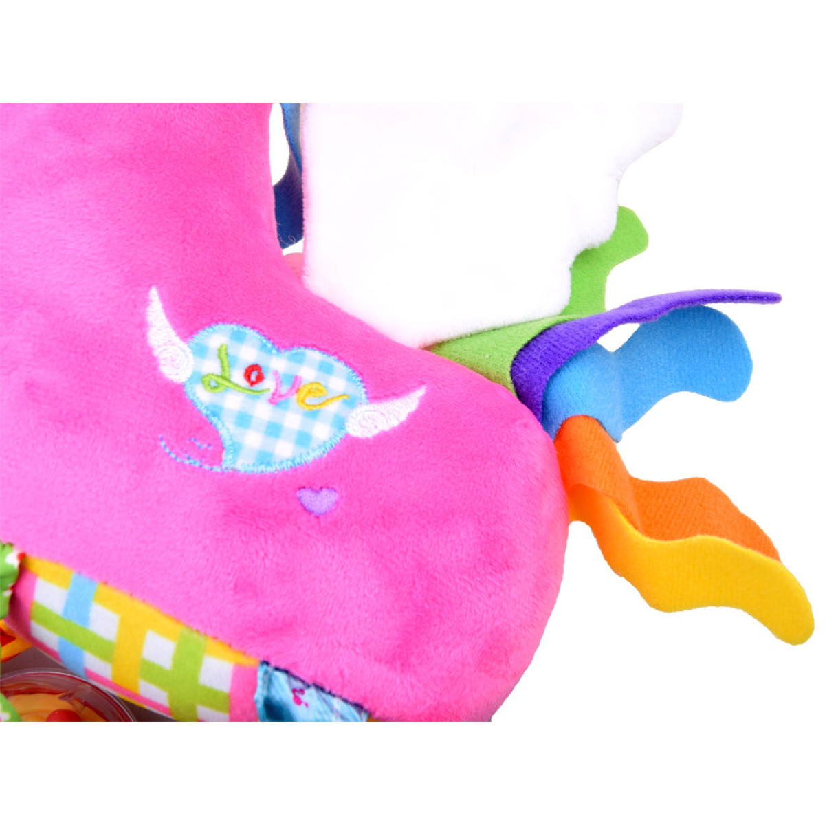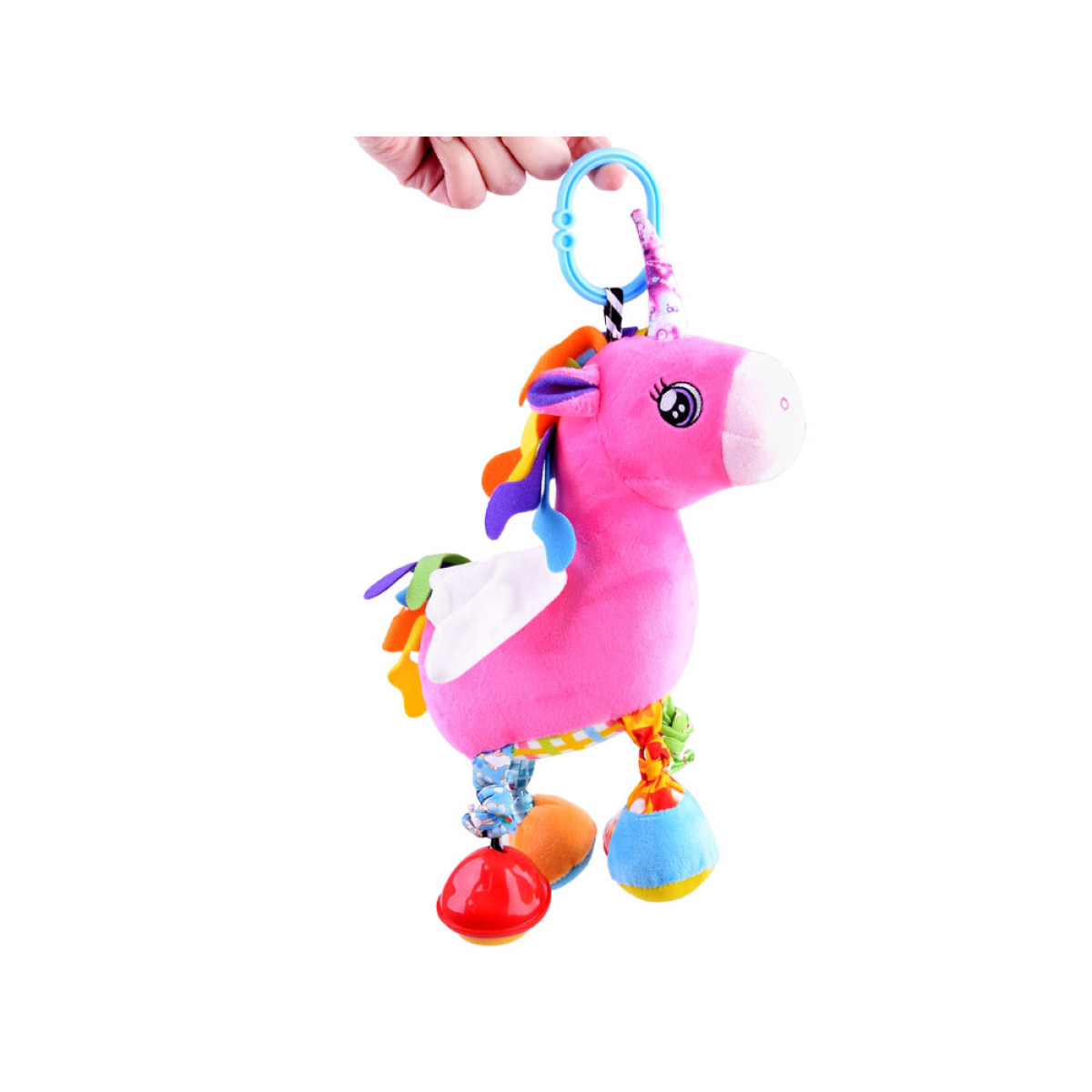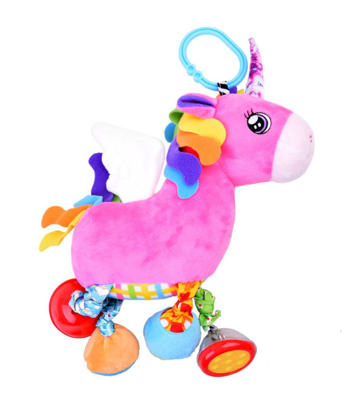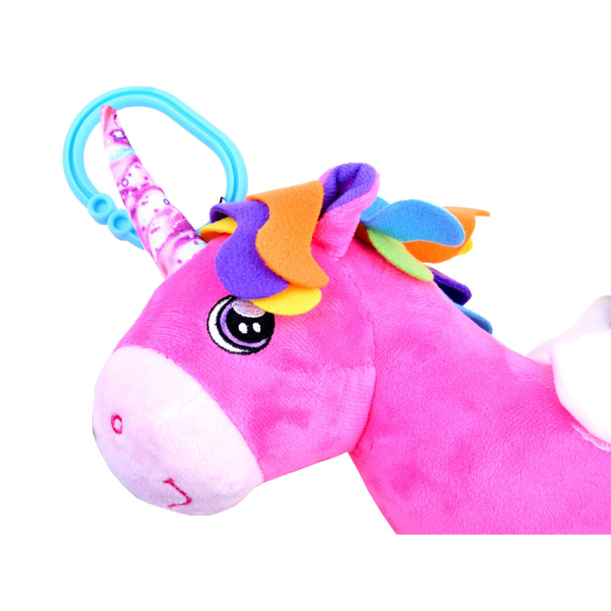 Minkštas vienaragis su vaivorykštės spalvų karčiais yra puikus žaislas kiekvienai mažai princesei.