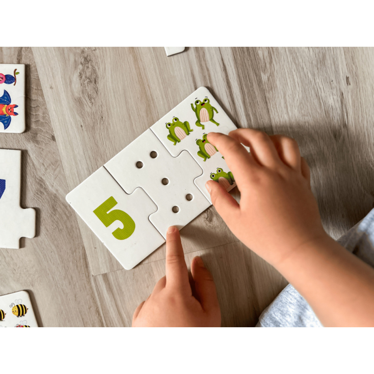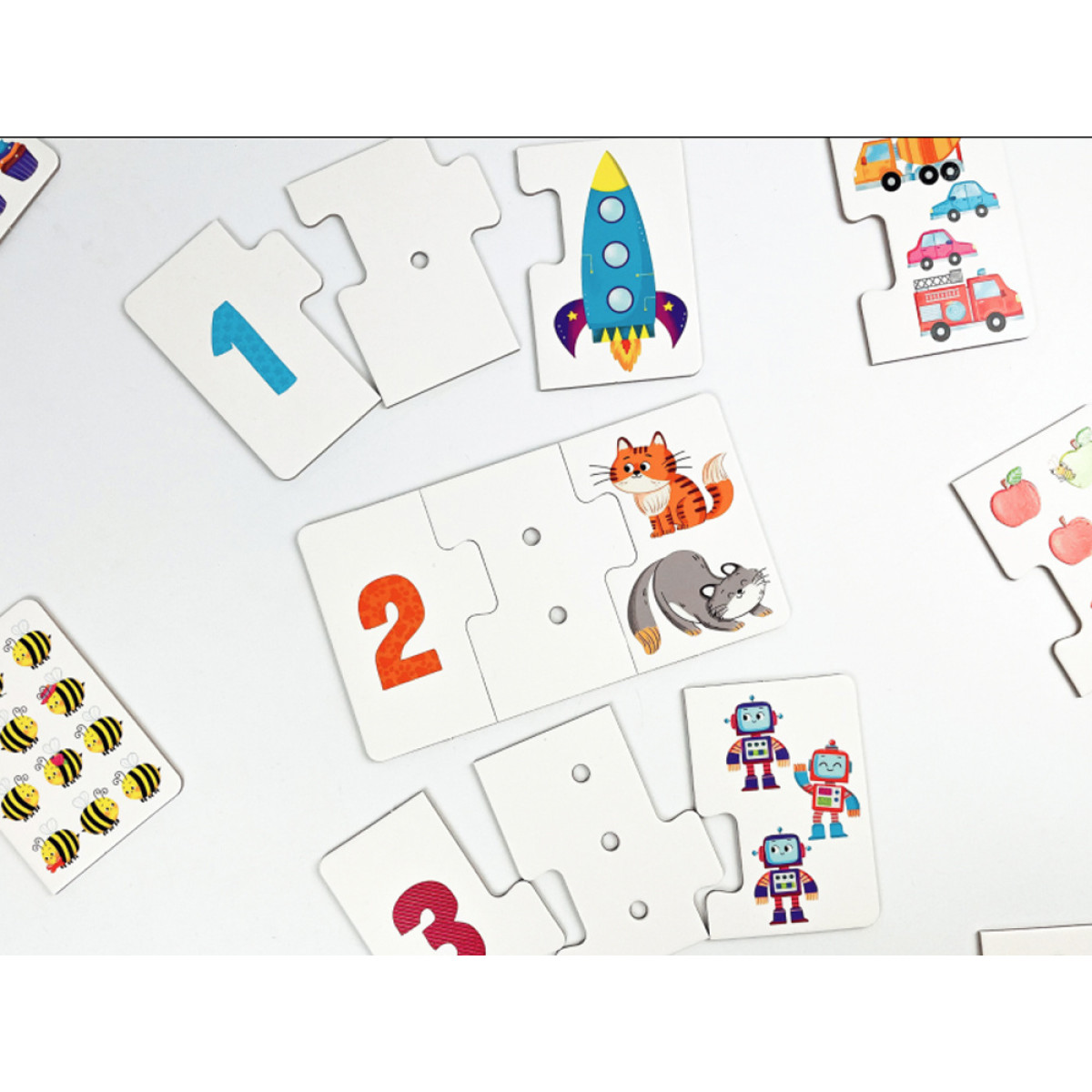 - dėlionės su iliustracija, vaizduojančia atitinkamą daiktų ar gyvūnų skaičių.