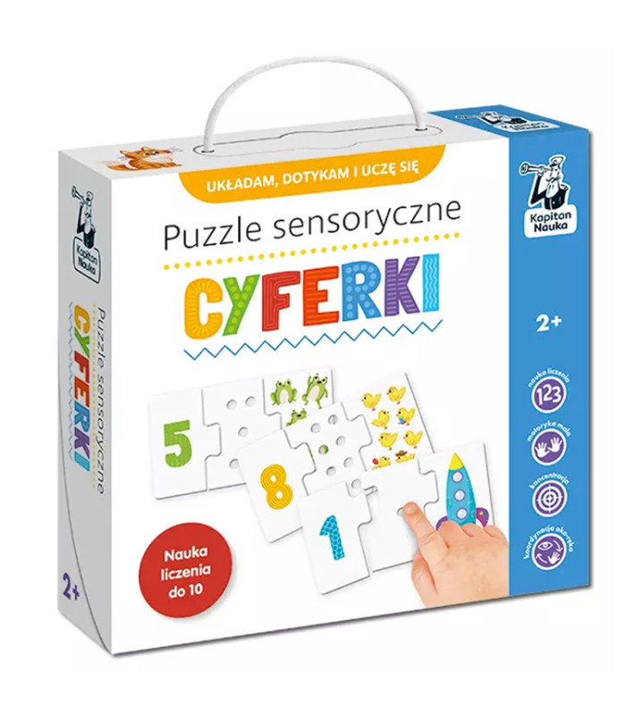 Pažink skaičių pasaulį per lytėjimą ir įdomią patirtį! Kapitano Nauka sensoriniai dėlionės skaičiai yra puiki edukacinė priemonė vaikams, kurie pradeda mokytis skaičiuoti. Dėl iškilių elementų ir spalvotų iliustracijų vaikai mokosi atpažinti skaičius, skaičiuoti ir lavina lytėjimo pojūtį – viskas vyksta džiaugsmingo žaidimo metu!