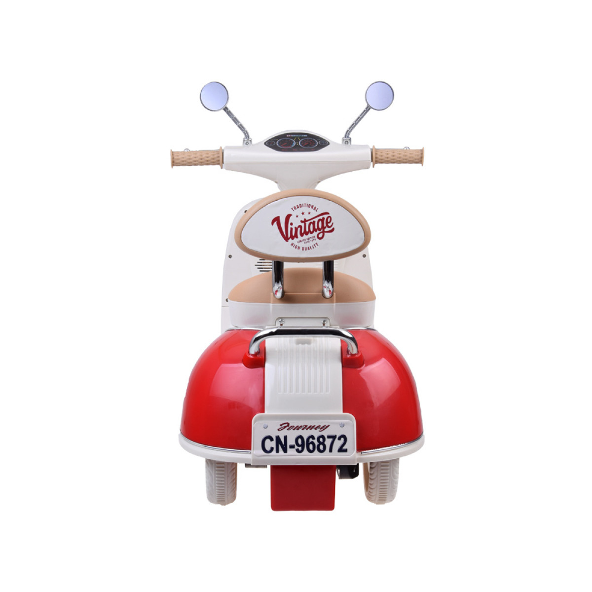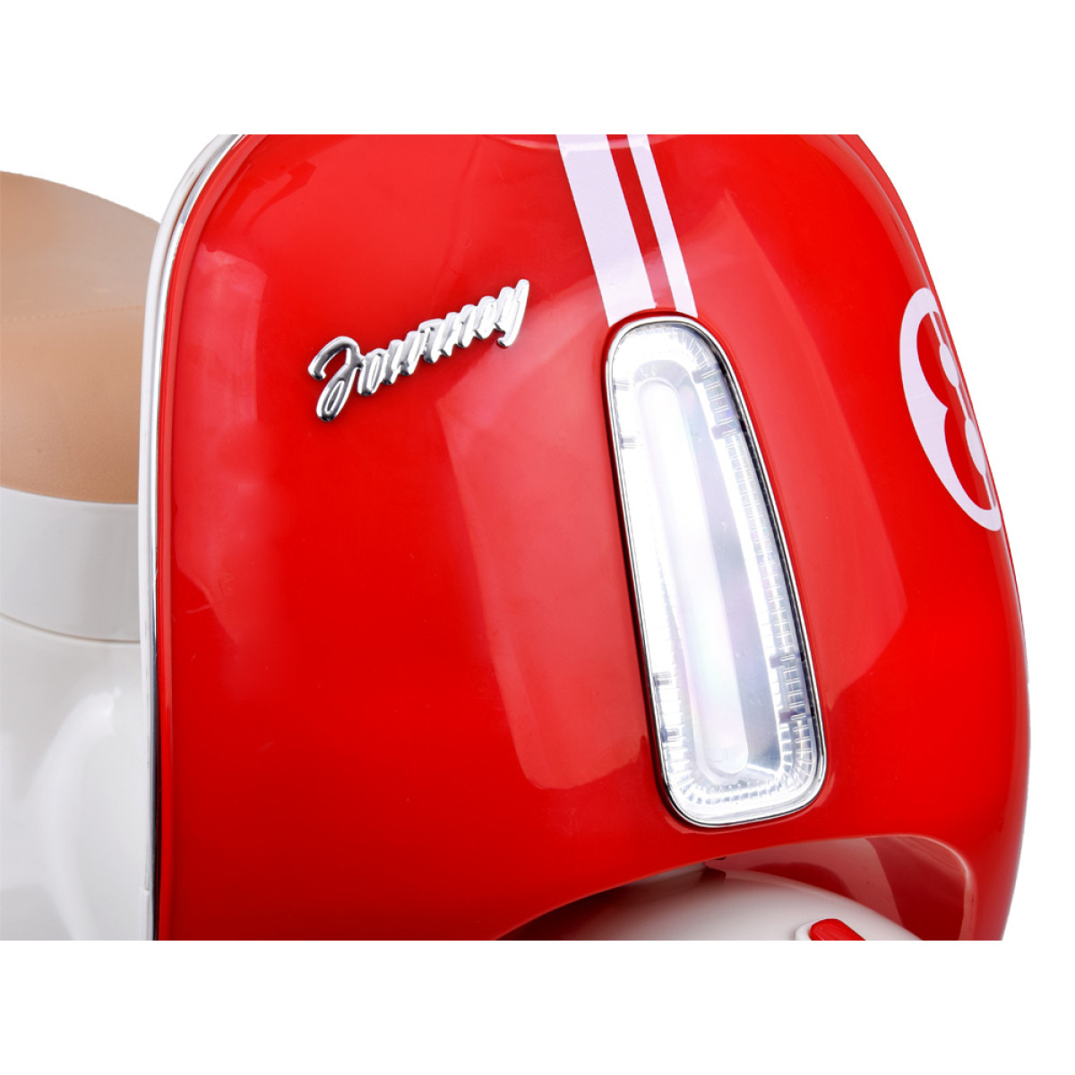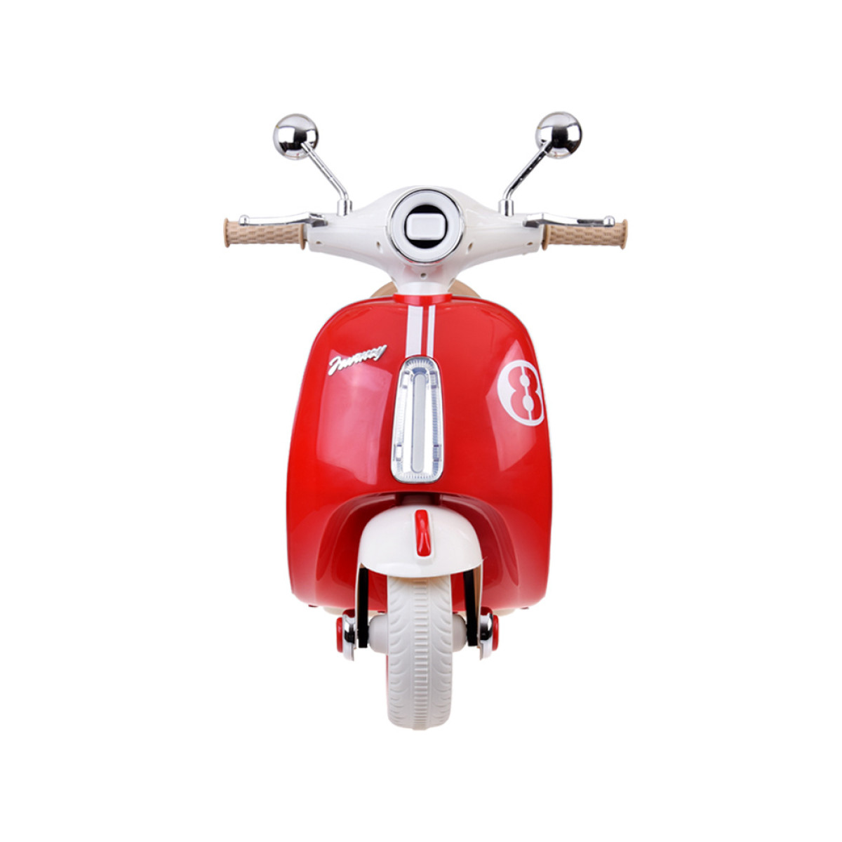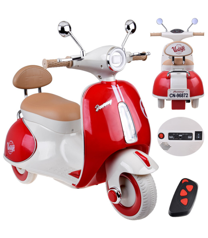 Šis vaikiškas elektrinis skuteris žavi klasikiniu dizainu, kruopščia apdaila ir patogiu valdymu. Tai puiki dovana gimtadieniui ar kitai progai. Dėl kompaktiško dydžio jis tinka važinėti tiek namuose, tiek parke ar kieme.