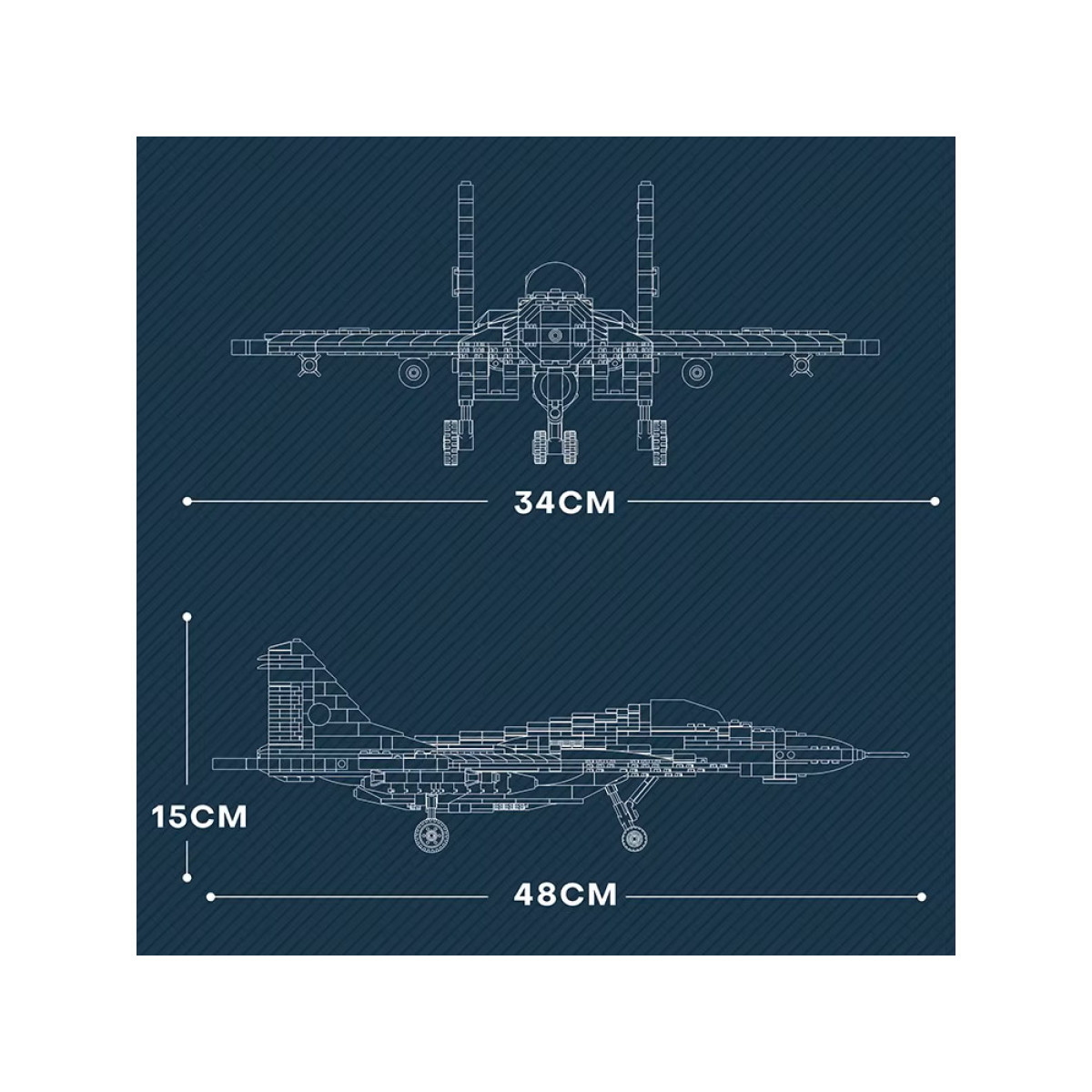 Įsitraukite į karinės aviacijos pasaulį su šiuo įspūdingu 1290 detalių rinkiniu, kuris leidžia sukurti tikslų legendinio MIG-29 kovinio lėktuvo modelį. Šis vienvietis, dvimotoris lėktuvas buvo sukurtas Sovietų Sąjungoje 70-aisiais kaip atsakas į modernius Vakarų kovinius lėktuvus, ir dešimtmečius žavi dėl savo ypatingo manevringumo, variklių galios ir ilgo nuotolio misijų galimybių.
