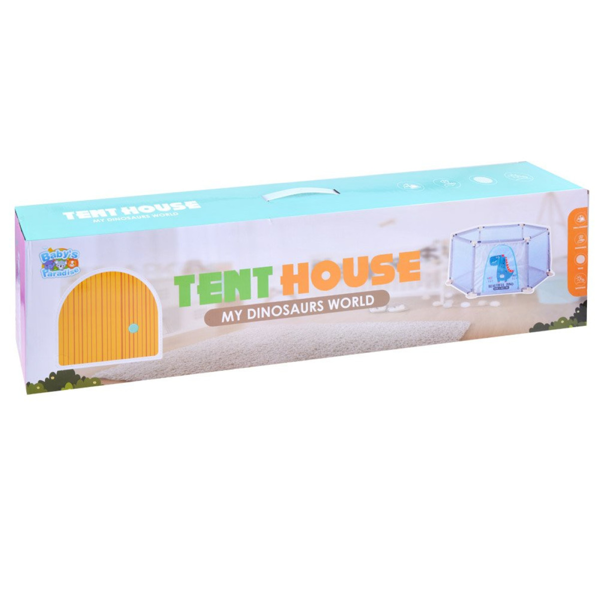 Konstrukcija yra stabili, medžiaga elegantiška su dinozauro atvaizdu. Rinkinį be vargo galima pastatyti kambaryje, terasoje ar net paplūdimyje, kad jis atliktų savo funkciją. Parduotuvė Jokomisiada siūlo daugybę žaislų, kilimėlių mažiausiems vaikams.