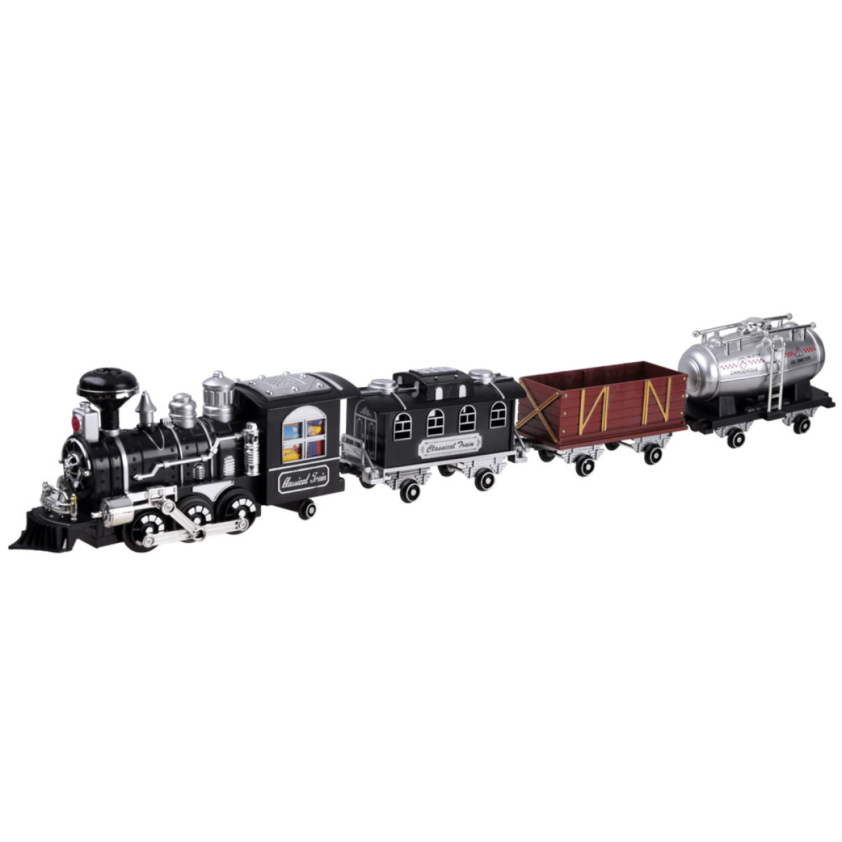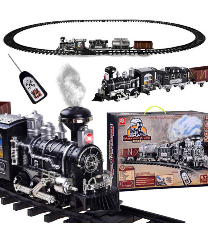 Ši lokomotyva, valdomą nuotoliniu pultu, sužavės kiekvieną mažąjį mašinistą. Lokomotyva kruopščiai pagaminta su dėmesiu smulkiausioms detalėms, varoma klasikiniu garvežiu, kuris važiuojant skleidžia greitai judančios lokomotyvos garsus. Be to, priekis šviečia įspėjamu šviesos signalu, o užpildžius baką vandeniu, iš kamino pradės rūkti dūmai kaip tikram senoviniam garvežiui. Važiuojant skleidžia garso efektus, tokius kaip traukinio švilpimas, ratų dundėjimas ant bėgių, varpas ir kiti pociūgams būdingi garsai. Šis nuostabus lokomotyvos modelis su vagonais tikrai pradžiugins kiekvieną pradedantį traukinukų modelių gerbėją.