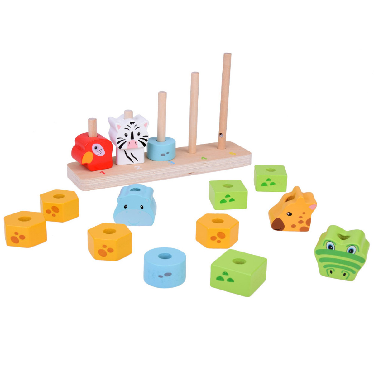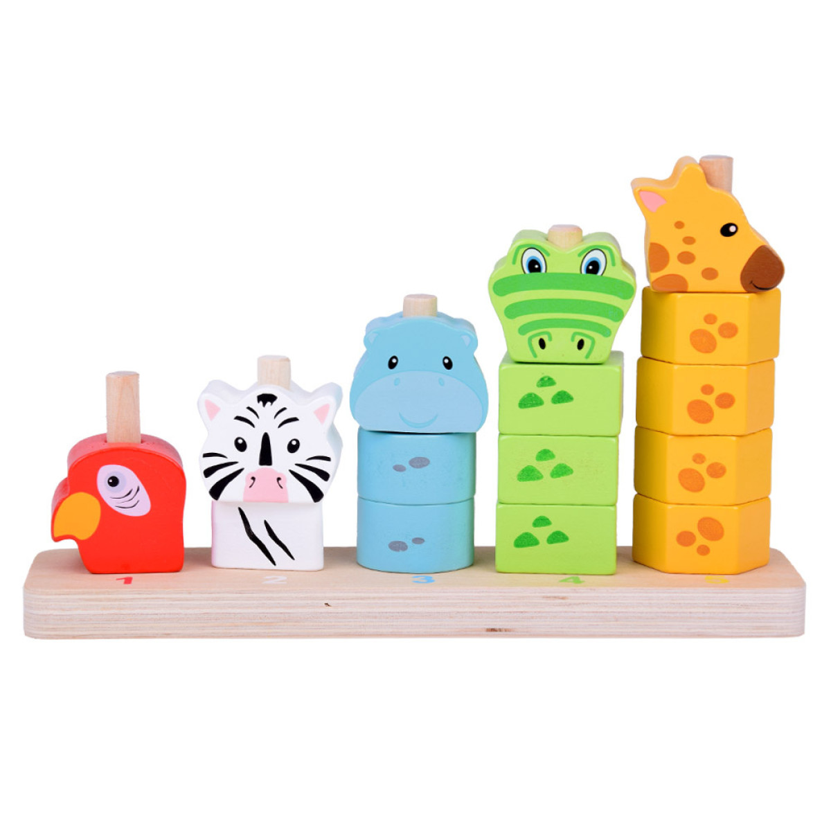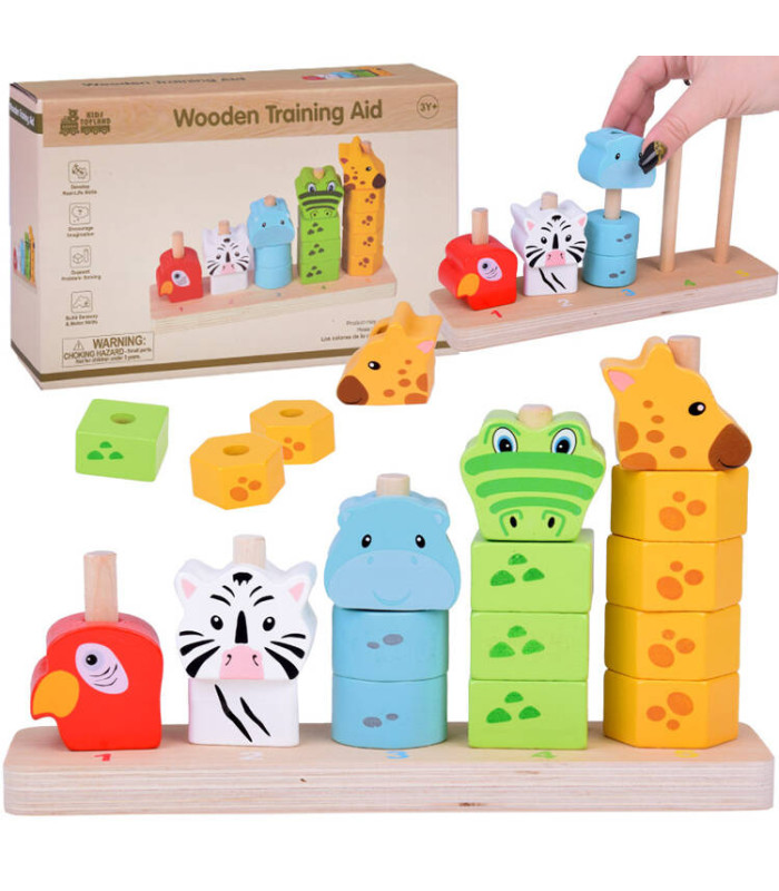 Spalvota piramidė mediniai blokeliai gyvūnai – žaislas, kuris moko spalvų, formų ir skaičiavimo!