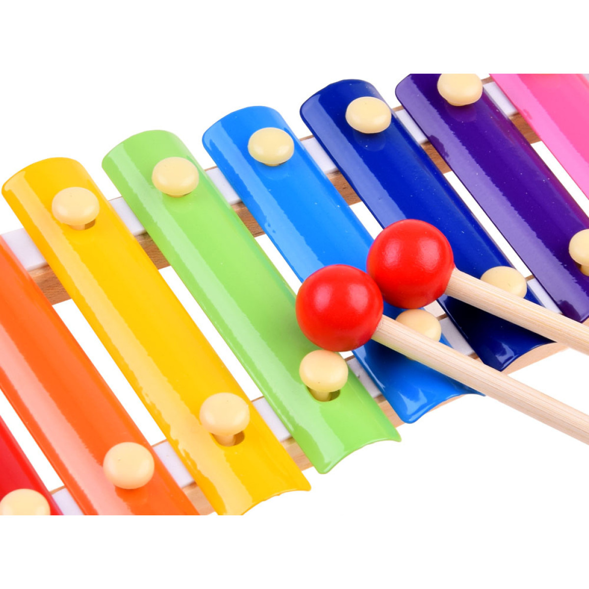 Spalvoti ksilofonai yra puikus pasirinkimas jūsų mažajam muzikantui. Pagaminti iš natūralios medienos su metalinėmis, spalvotomis plokštelėmis, šie ksilofonai leidžia vaikui išmokti groti visą gamą. Į komplektą įeina natos, kurios yra ant ksilofono pakuotės, kad vaikas galėtų lengvai pradėti mokytis.