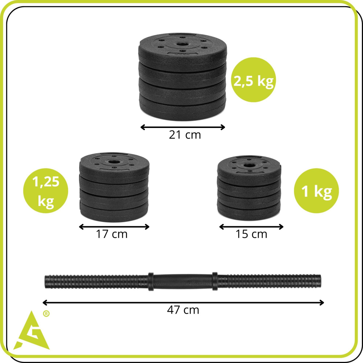 - 8 x 2,5 kg diskai