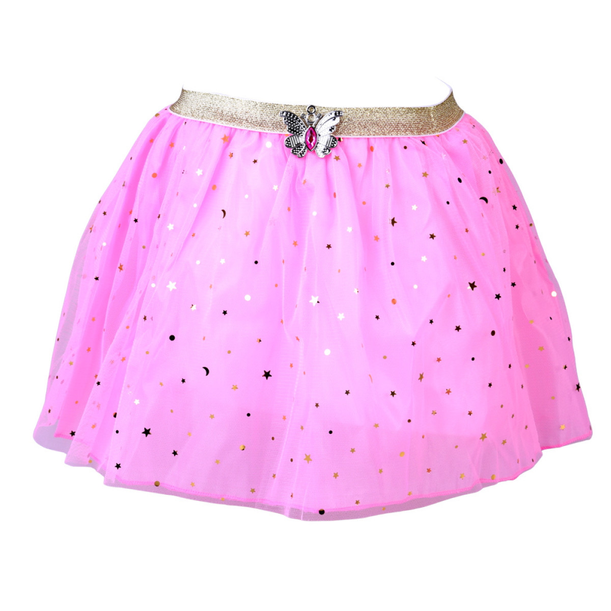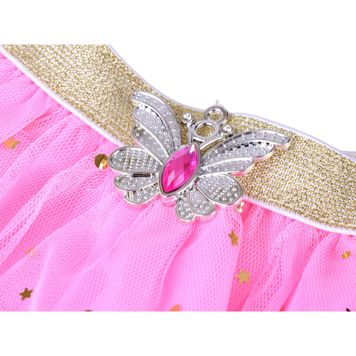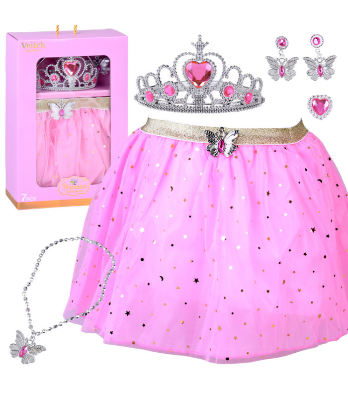 Rinkinyje yra lengvas, rožinis sijonukas su subtiliu blizgesiu, kuris gražiai banguoja kiekviename judesyje. Elastinga juosta juosmenyje leidžia lengvai prisitaikyti prie silueto, užtikrindama patogumą žaidžiant ir šokant.