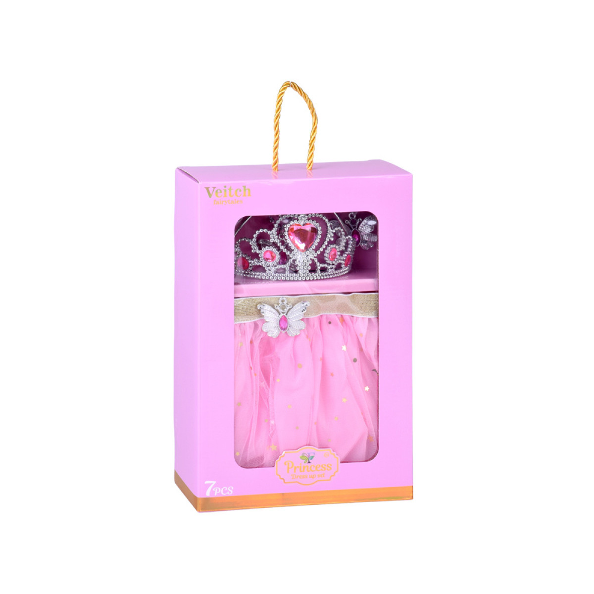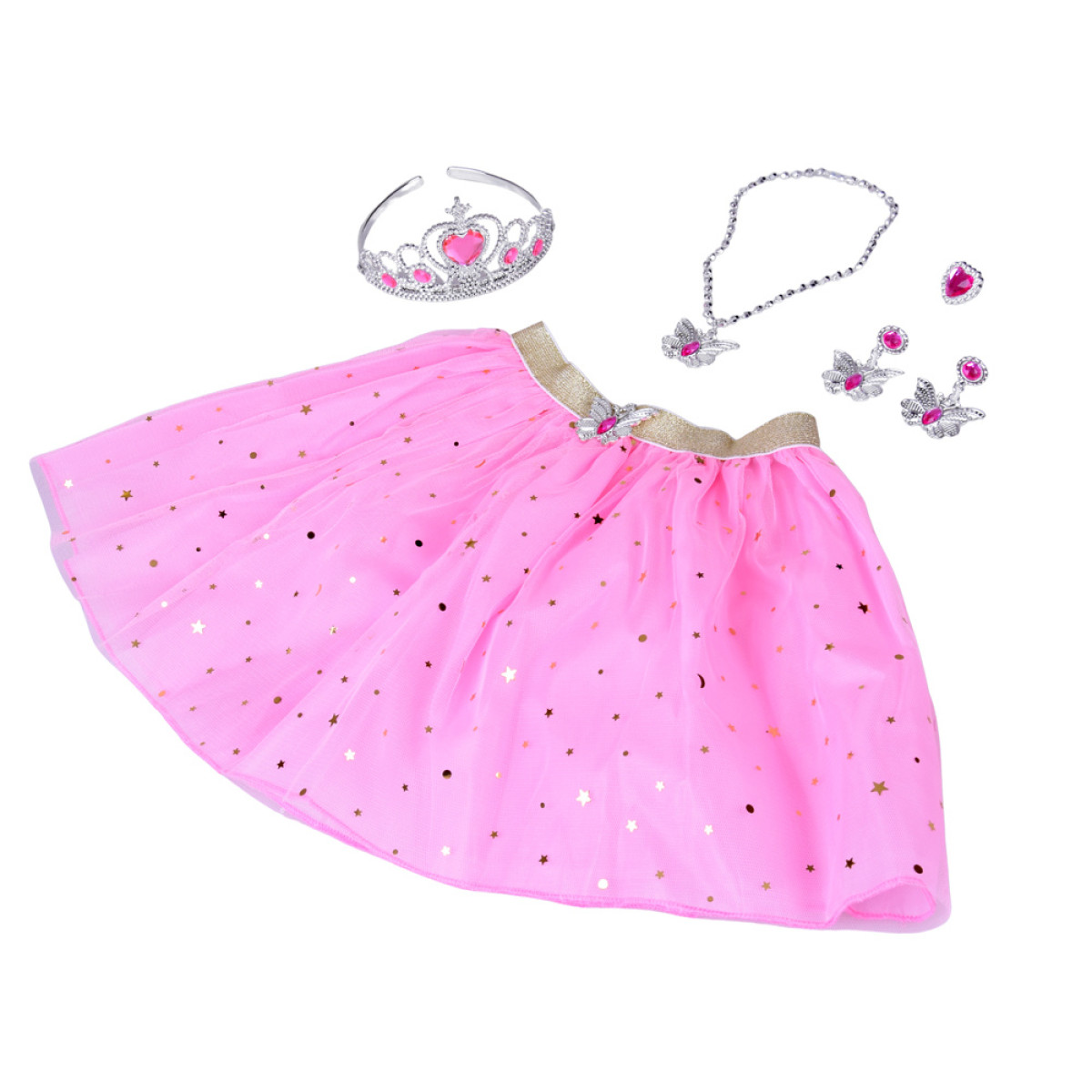Komplektą papildo papuošalų rinkinys – sidabrinė karūna, puošta rožiniais kristalais, priderinta auskarų pora (klipsai) - drugeliai, vėrinys ir draugystės žiedas, kuris pagal legendą turi svajonių išsipildymo galią. Visi elementai kuria vieningą motyvą – fėjos širdies simbolį, pilną blizgesio.