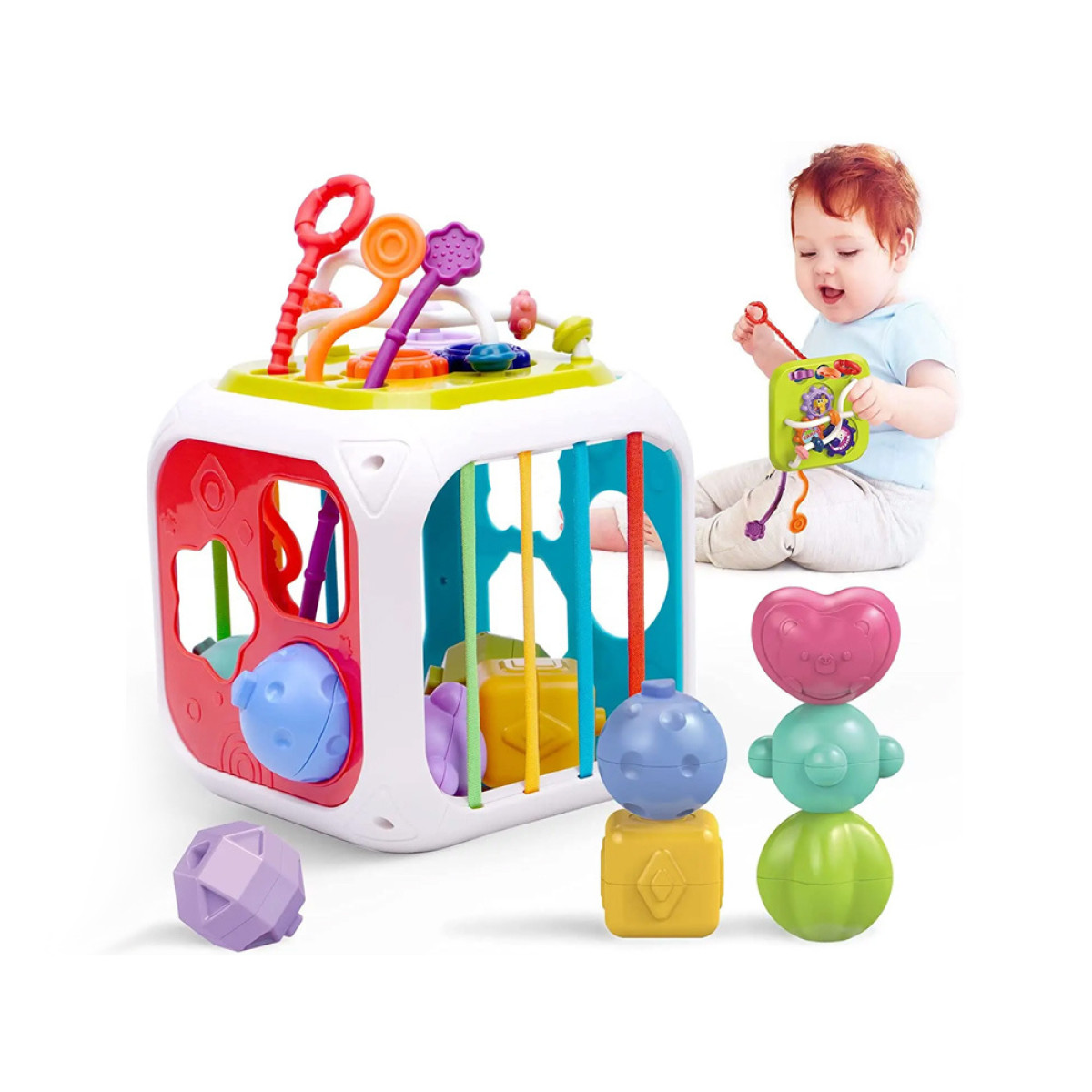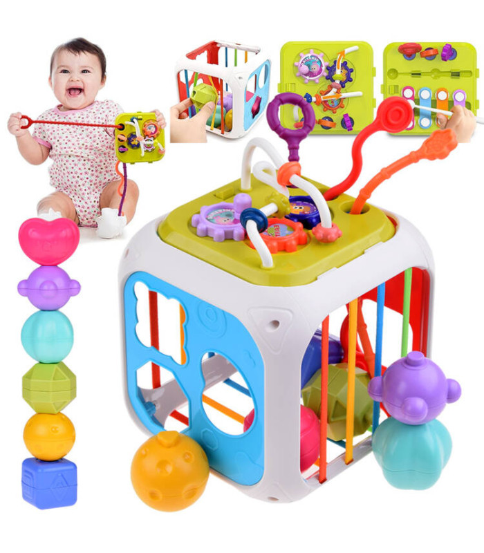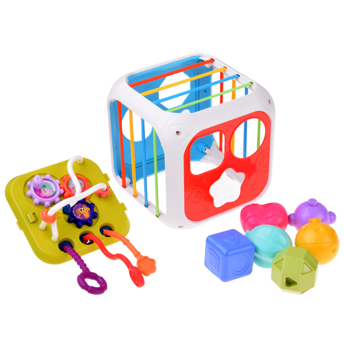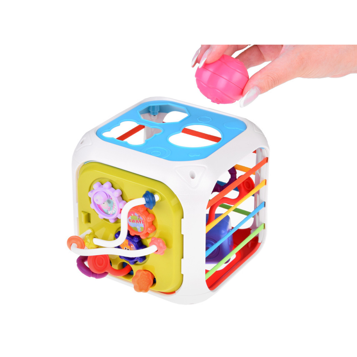 Edukacinė kubas yra produktas, kuris neabejotinai sudomins ir pritrauks kiekvieno vaiko dėmesį. Kubeliai pagaminti iš aukštos kokybės plastiko subtiliomis spalvomis ir formomis. Trys sienos turi spalvotas gumeles, o kitos dvi turi sieneles su trimis skirtingų formų skylutėmis. Vaiko užduotis yra priderinti kubelio formą prie tinkamos skylutės.