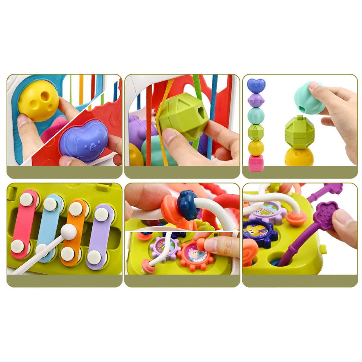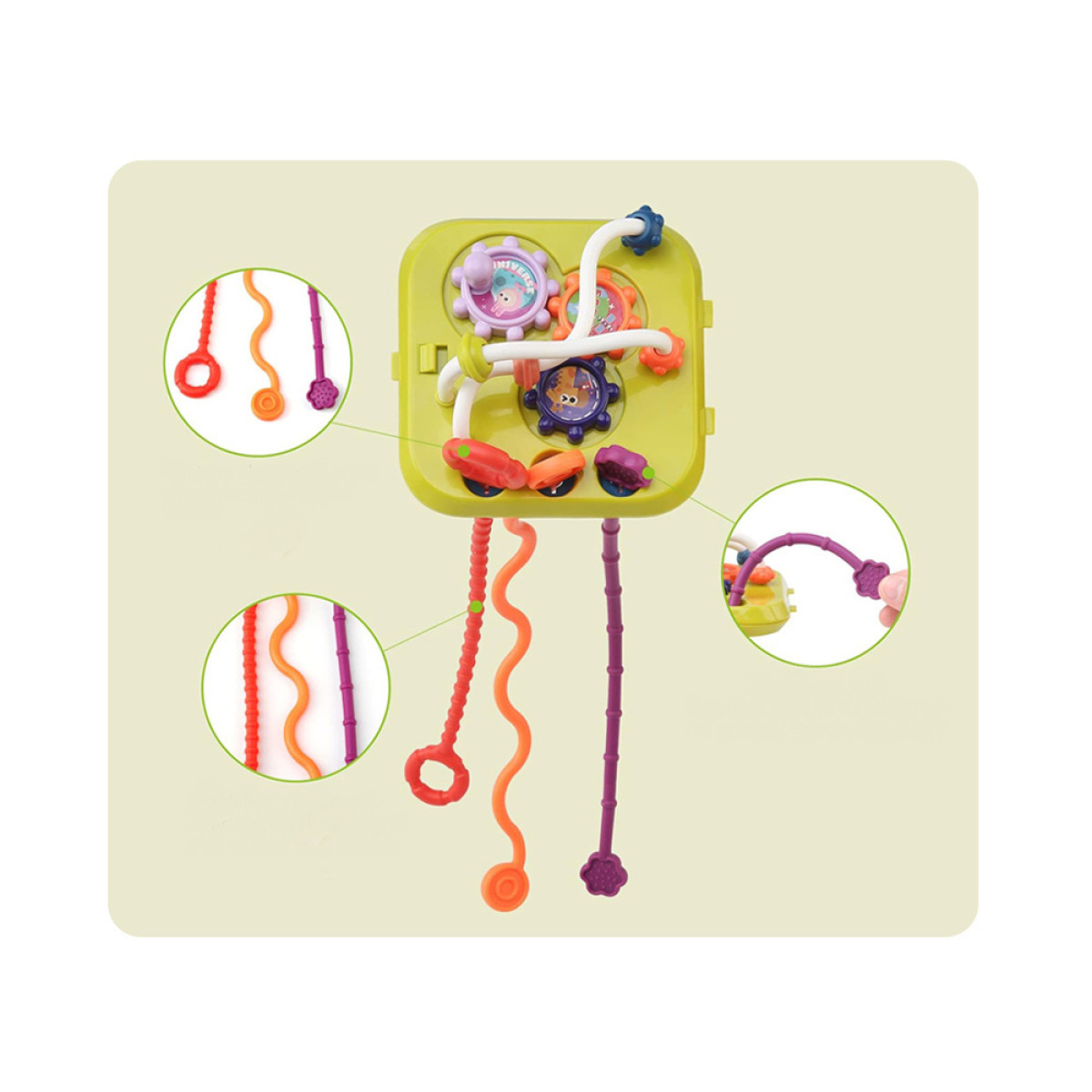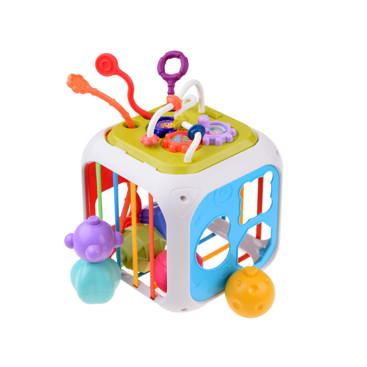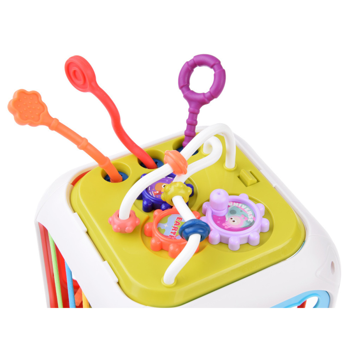 Be to, paskutinė siena gali būti naudojama iš abiejų pusių. Pirmoji pusė turi mažą spalvotą ksilofoną ir įvairių struktūrų virveles, kurias galima traukti iš vienos pusės į kitą. Antroji pusė turi spalvotus sraigtus ir galimybę perkelti mažus, spalvotus karoliukus. Žaidimas susideda iš elementų įdėjimo ir išėmimo iš edukacinės kubo. Žaisdami vaikai lavina pojūčius ir tobulina savo motorinius įgūdžius. Kiekvienas kubelis išsiskiria ir skatina vaiko smalsumą išimti ir įdėti juos atgal į rūšiavimo žaislą. Šis žaislas sujungia geriausias mechaninių žaislų savybes su galimybe tobulinti mąstymo įgūdžius.