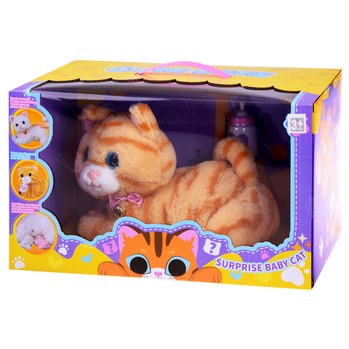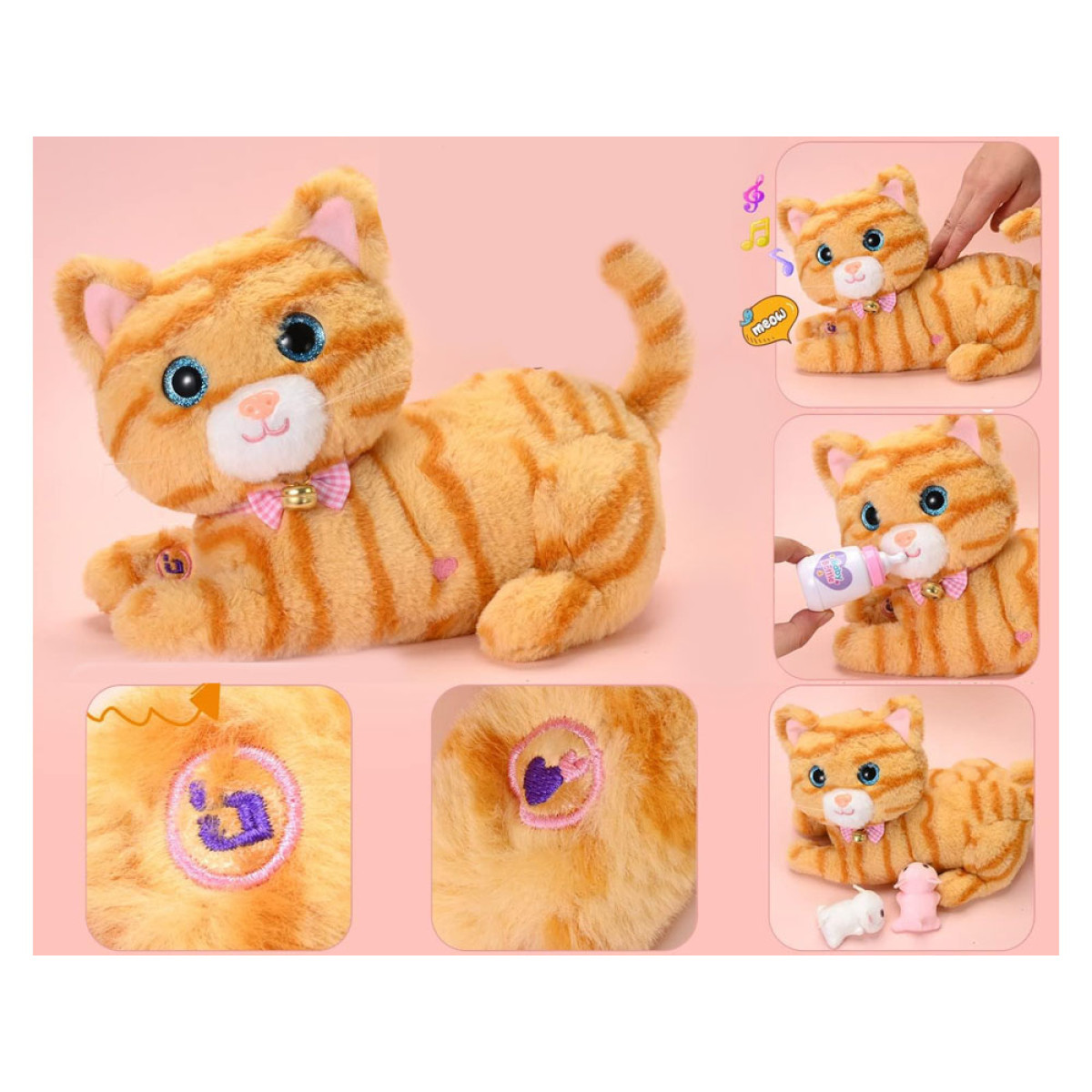 Žaislas turi daug funkcijų, kurios užtikrina daugybę valandų smagios veiklos ir niekada nenusibos. Jis pagamintas iš minkšto ir malonaus liesti pliušo, turi žvilgančias mėlynas akutes ir mielą nosytę iš plastiko. Papuoštas rožiniu nuimamu kaspinėliu su auksiniu varpeliu.