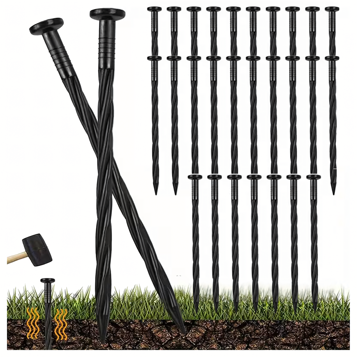 Patvarūs sodo smeigtukai, kurių ilgis yra 15 cm, pagaminti iš stipraus plastiko. Puikiai tinka vejai, agrotekstilėms, agropluoštams ar vejos tinklams tvirtinti. Šios kotvės neleidžia joms išslysti iš žemės, o galvutė apsaugo medžiagą nuo pažeidimų.
