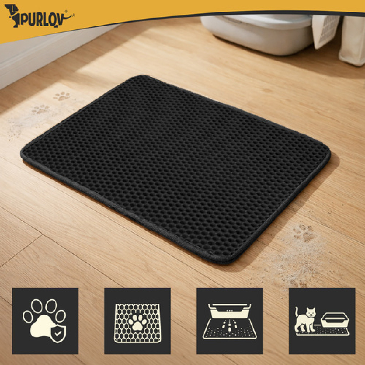 - Purlov kilimėlis po kačių tualetu 60 x 45 cm, juodas