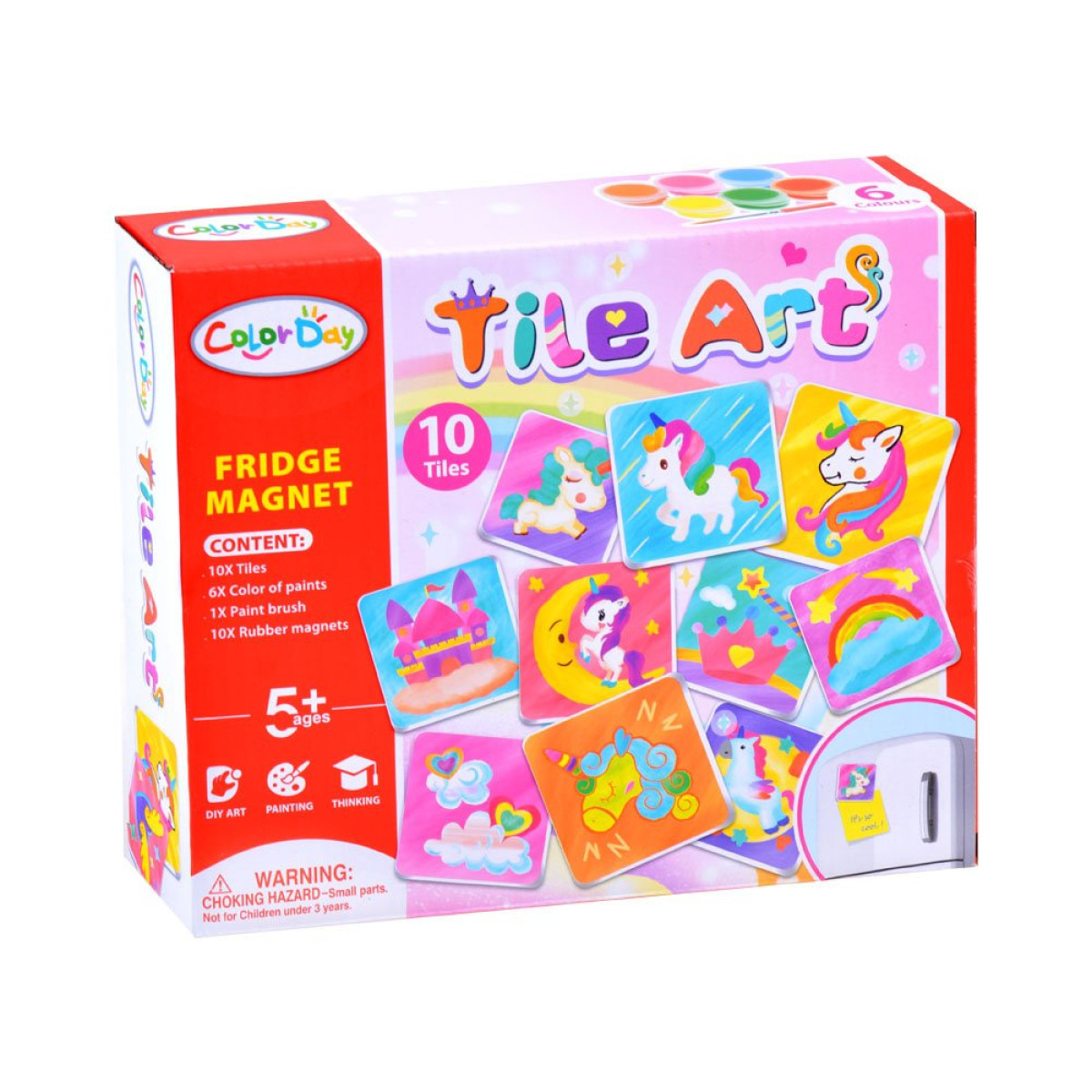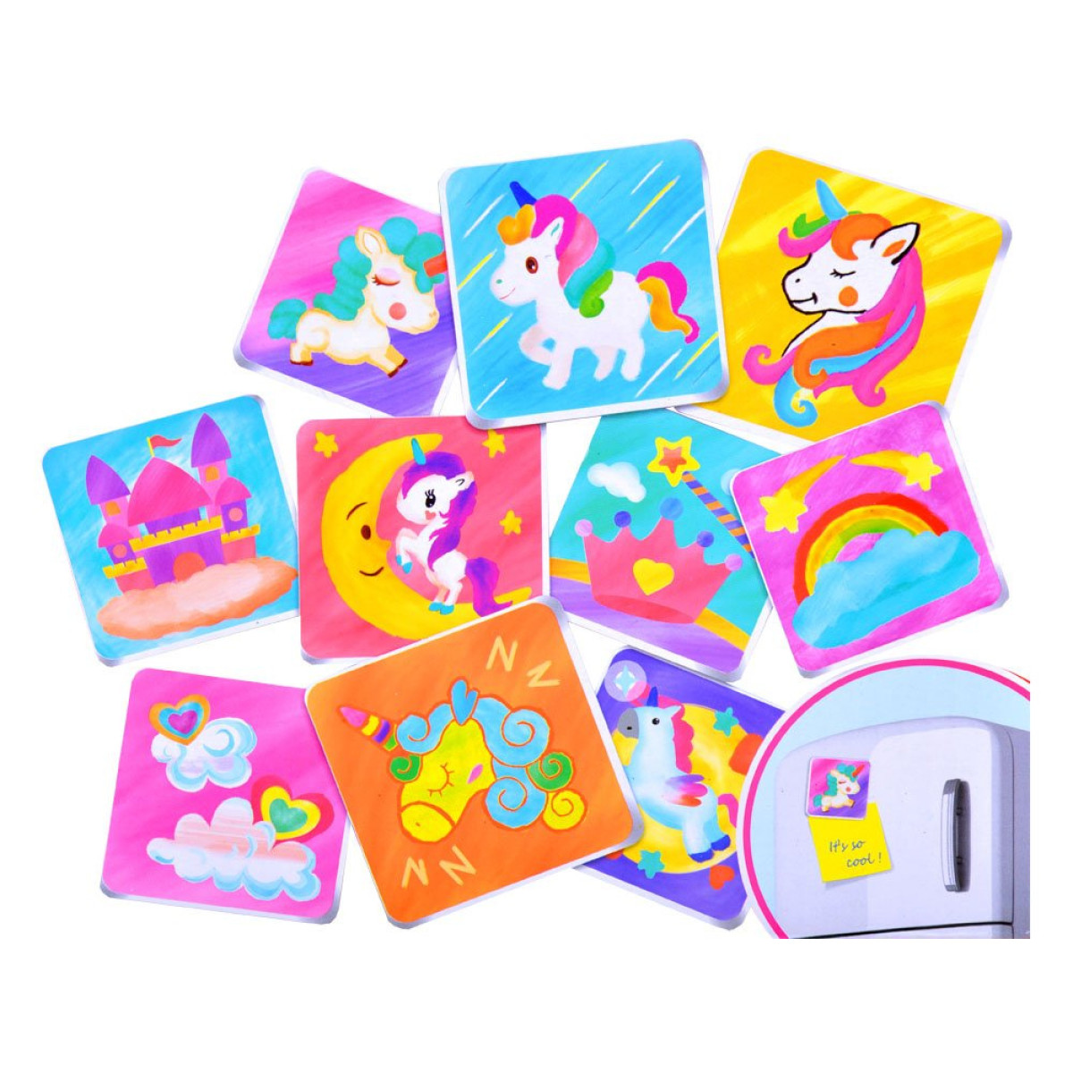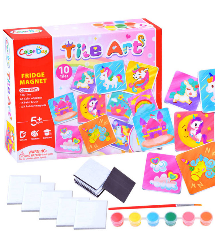 Kūrybinis rinkinys vaikams, mėgstantiems rankdarbius. Šis rinkinys leidžia vaikams savarankiškai sukurti gražius magnetus, kurie puikiai papuoš mūsų šaldytuvą ar lentą. Vaikas turės užduotį nuspalvinti keramines plyteles pagal savo pageidavimus ir vaizduotę bei priklijuoti magnetinę juostelę. Rinkinys leidžia sukurti 10 skirtingų magnetų. Magnetai yra mėgstamiausias suvenyras iš kiekvienų atostogų, dabar juos gali sukurti vaikas naudodamas savo vaizduotę.