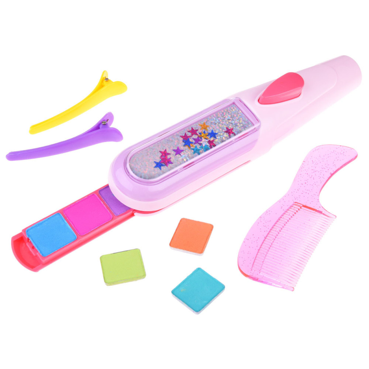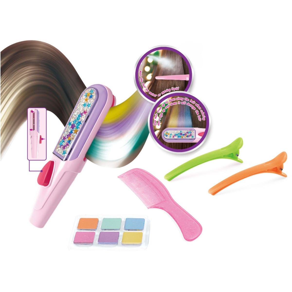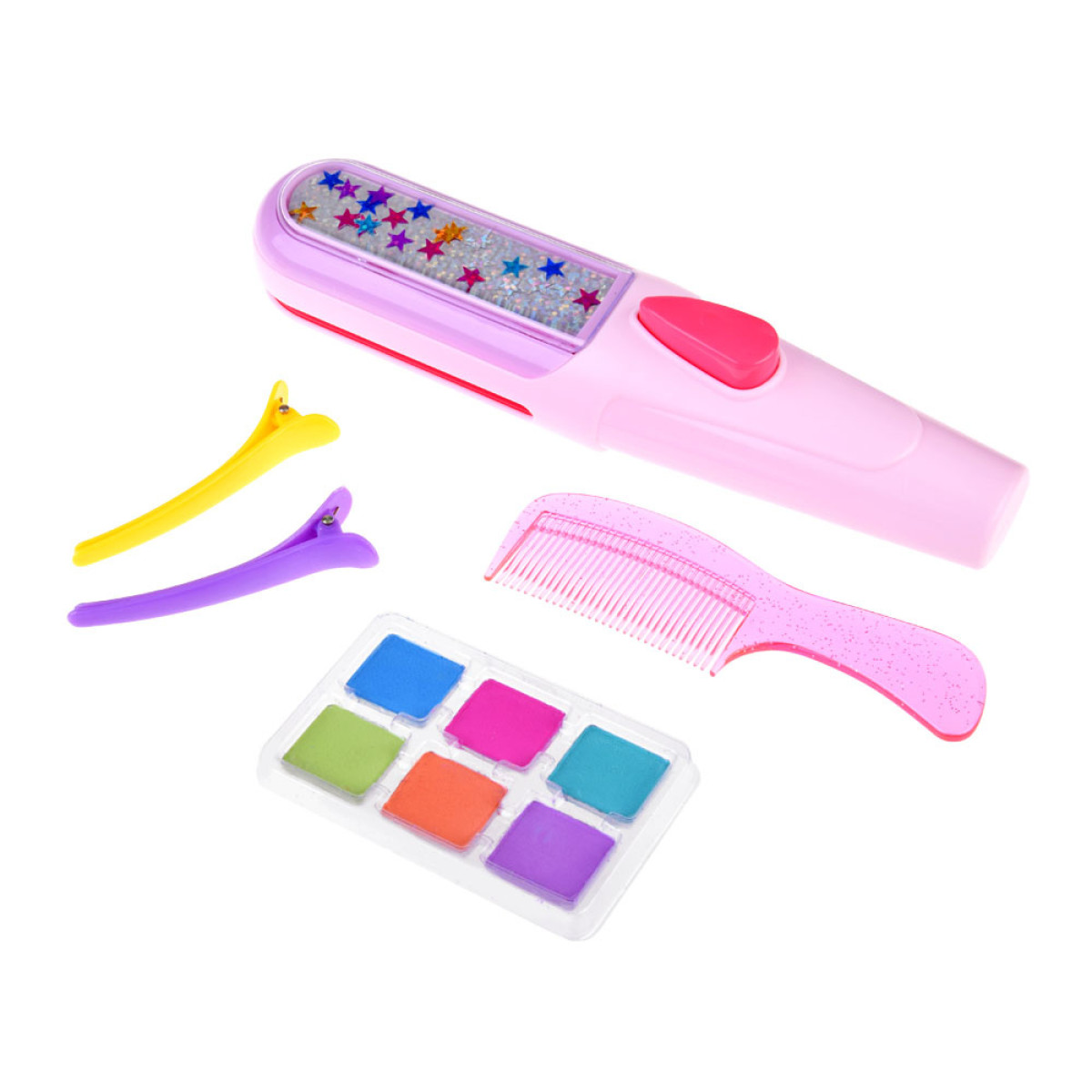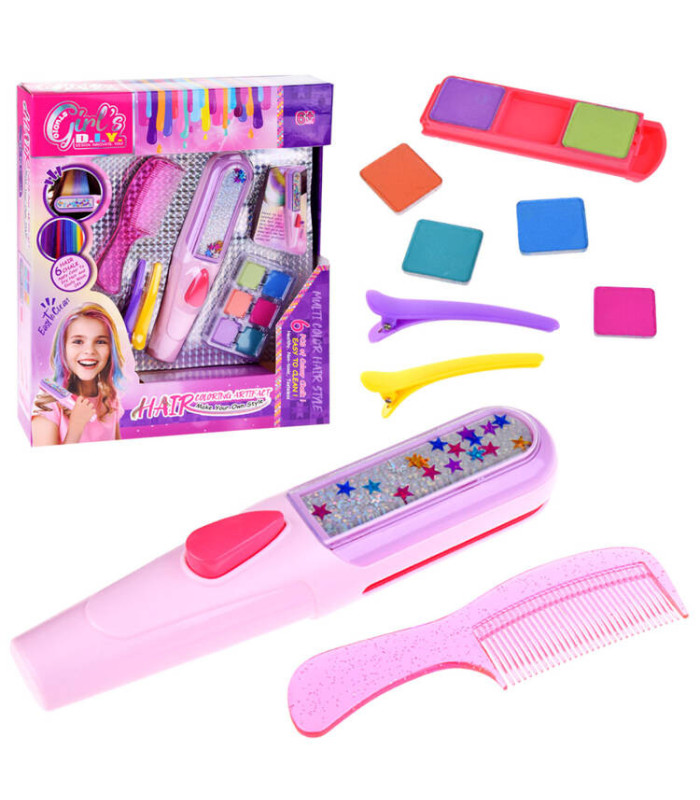 Rinkinys apima visas reikalingas priemones, su kuriomis galite sukurti naują spalvingą šukuoseną. Jame rasite net 6 spalvų kreidą: violetinę, oranžinę, žalią, jūros spalvos, rožinę ir mėlyną, taip pat šukytę ir įrenginį spalvai uždėti ant plaukų.